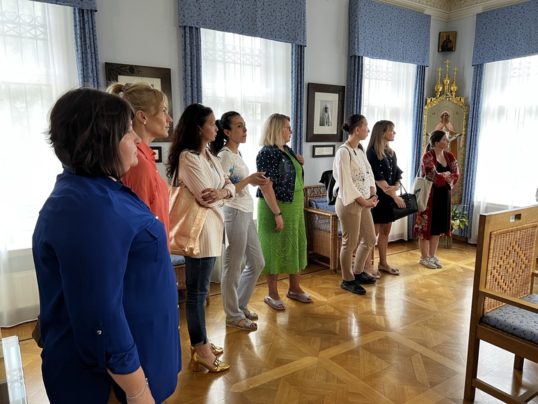 На экскурсии по дому-музею княгини Елизаветы, основавшей святыню, гости познакомились с историей обители, узнали, как она изменилась за 112 лет существования, какими социальными проектами занимается община и какие мероприятия проводят сотрудники для москвичей и путешественников. А это не только церковные службы, но и встречи с артистами, концерты, пикники и многое другое.