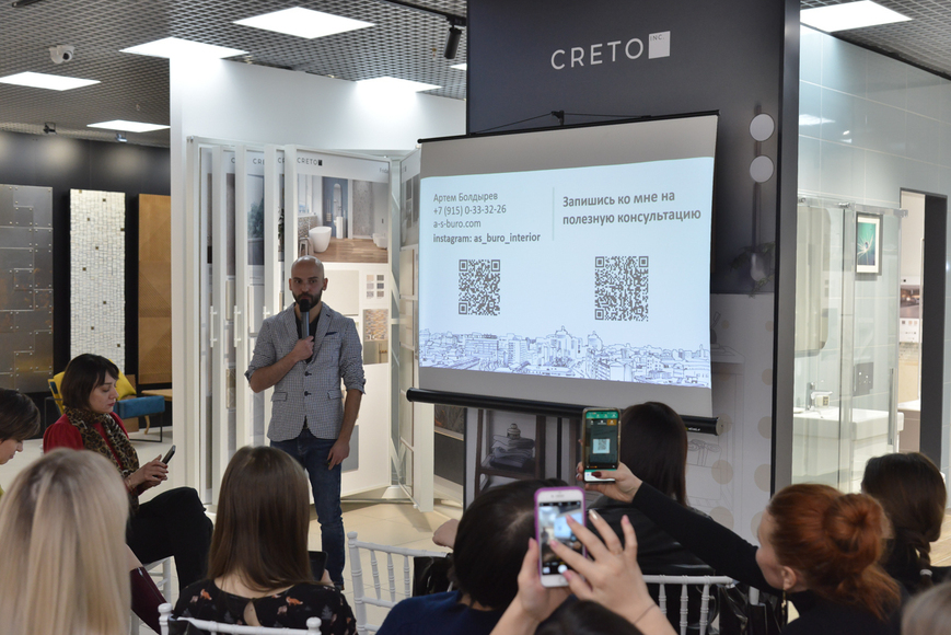 Лайфхаками, инсайтами и профессиональными наблюдениями с участниками салона поделился Артём Болдырев, дизайнер, руководитель студии «АС бюро». Профессионал отметил, что для дизайнера важно знать обо всех новинках, которые предлагают производители, чтобы создавать интерьеры, которые на 100% удовлетворят запросы клиентов.