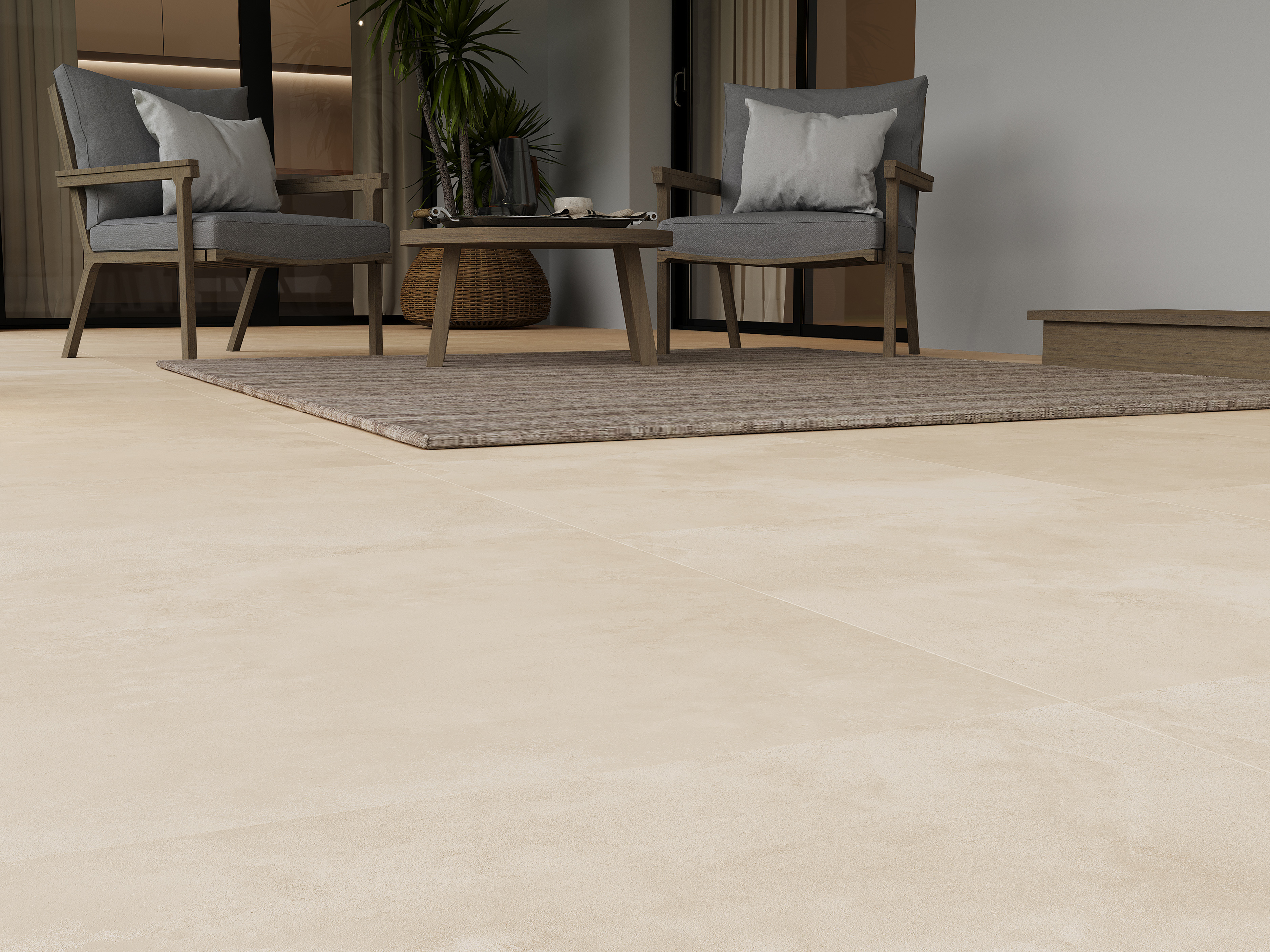Бархатистый бежевый керамогранит Studio украсит любой современный интерьер. Его изящный минималистичный рисунок дополнен лёгким рельефом, воспроизводящим неровности бетона. Укладка с минимальным швом благодаря ректифицированному краю раскроет красоту материала, который наполняет помещение светом и воздухом. Дизайнерский эксперимент точно не обойдется без этой базовой стильной новинки. Особенно эффектно плитка будет выглядеть в паре с деревом и металлическими аксессуарами.