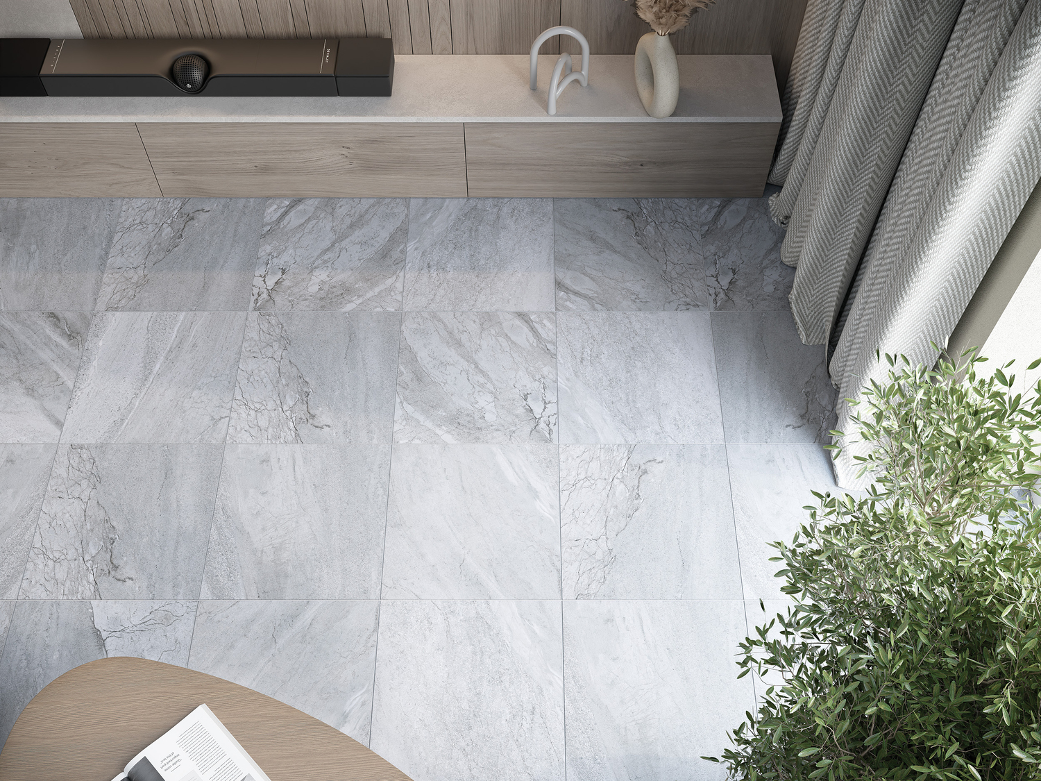 Эффектную имитацию тёмно-серого слейта представляет коллекция керамогранита Storm. Глубокий серый цвет горного камня поможет создать стильный и нетривиальный интерьер. Каждая прожилка детально прорисована для большей реалистичности, а за идеально матовой поверхностью просто ухаживать.