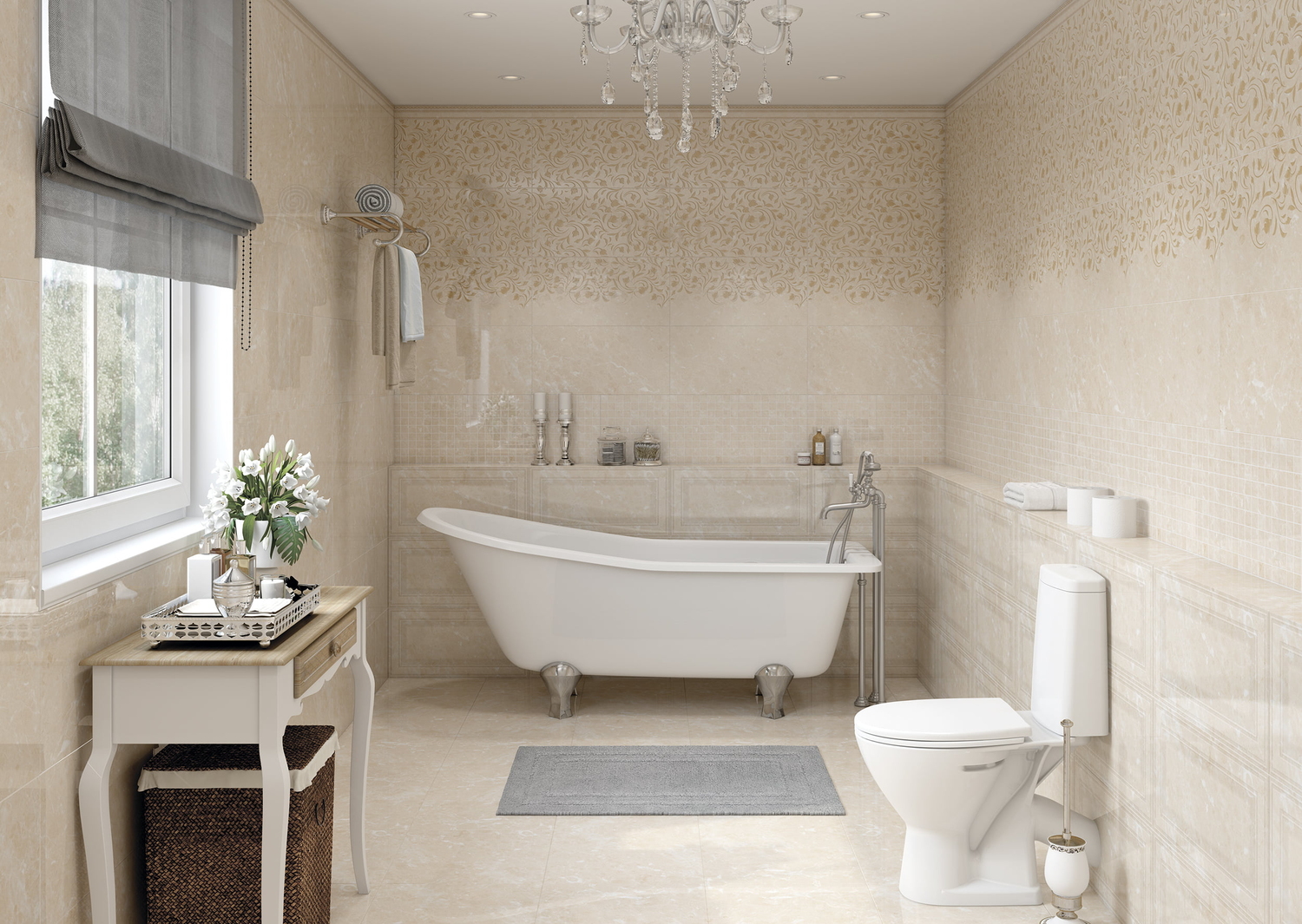 ALICANTE (АЛИКАНТЕ) - теплая солнечная коллекция в классическом стиле. Мраморные прожилки на светло-бежевом фоне облицовочной плитки достоверно передают рисунок этого благородного камня. Модный рельеф "рамка". Декоративные вставки с орнаментом, напоминающим переплетенные ветви, деликатно подчеркнутые золотым люстром. Бежевая мозаика может быть базой для всей стены или выполнить декоративную функцию для отдельной зоны интерьера.