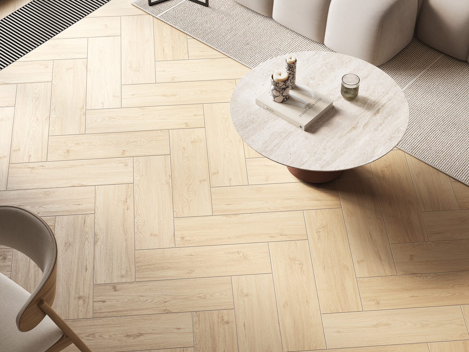 Светло-бежевый керамогранит Ashwood отлично вписывается и в скандинавские интерьеры, и в классический стиль. Также светло-бежевый керамогранит добавит природной лёгкости и света интерьеру. Органичная красота его поверхности достигается путём высокоточной цифровой печати, при которой детально прорисовываются годовые кольца и прожилки дерева.