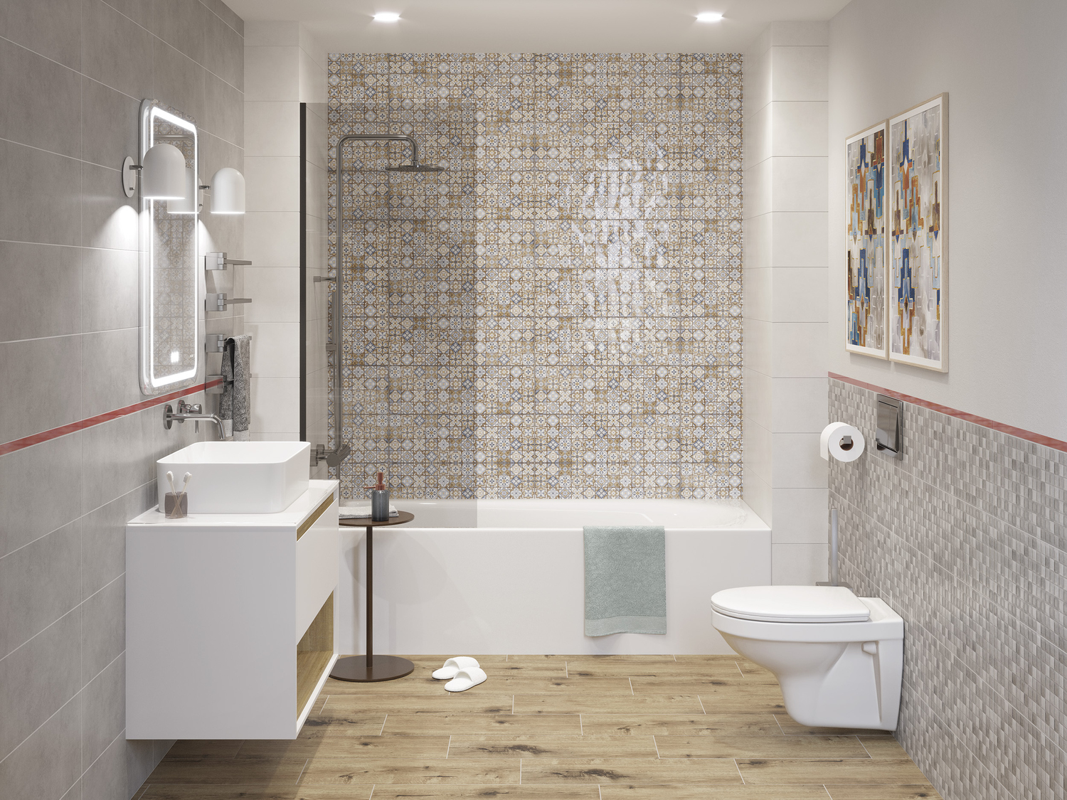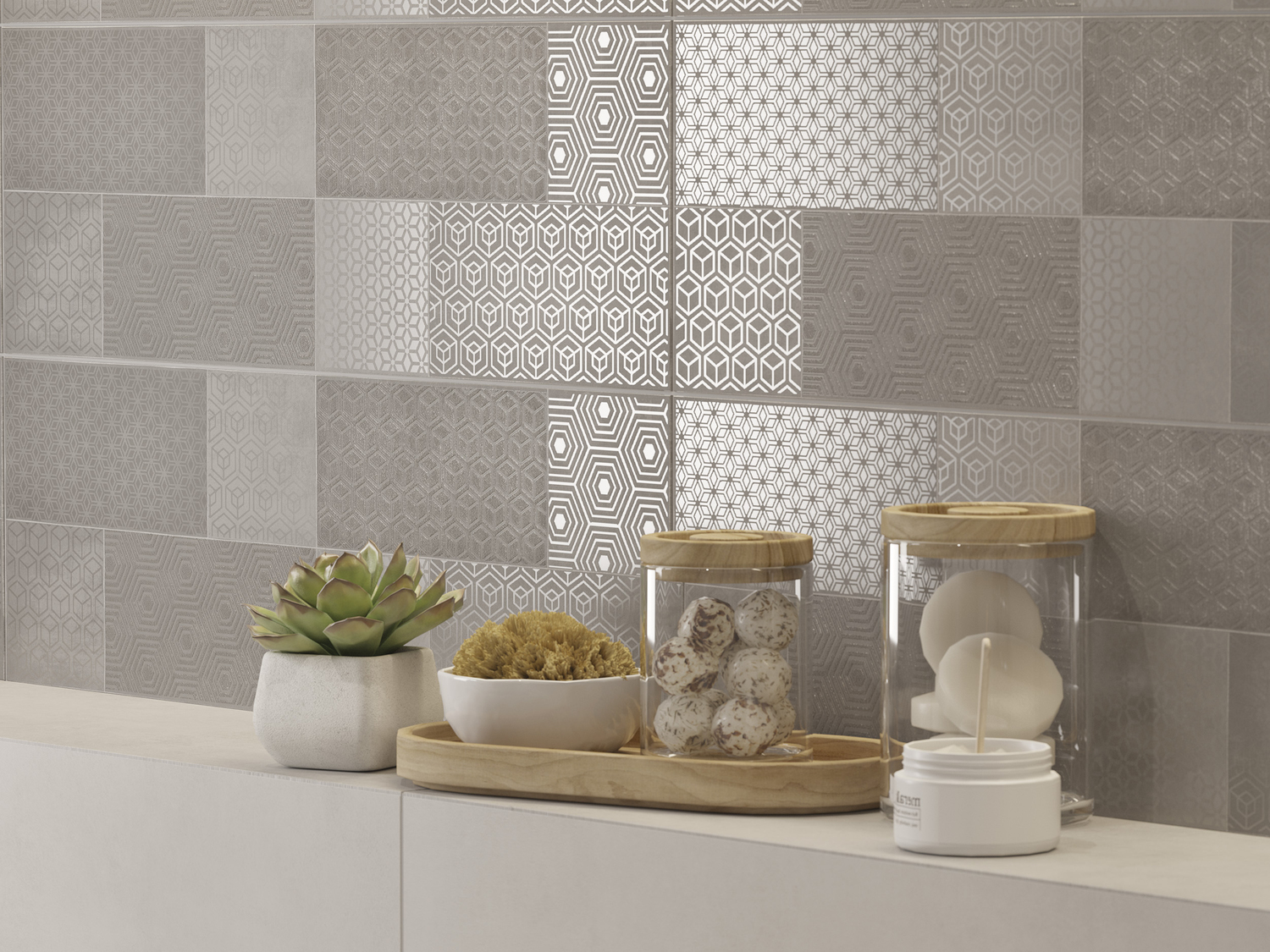 Коллекция ATLAS (АТЛАС) создает по-настоящему стильный и ультрасовременный интерьер. Матовая поверхность базовых плит, выполненных «под цемент», и глянцевая многоцветная с узором «пэчворк» создают яркое сочетание фактур и непохожих друг на друга стилей. Коллекцию дополняет красный стеклянный бордюр, благодаря которому можно реализовать самые креативные идеи дизайна.