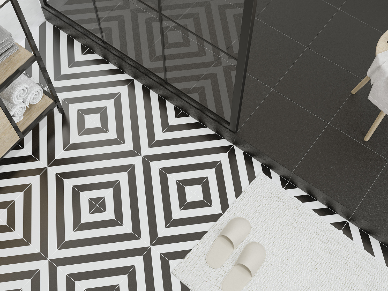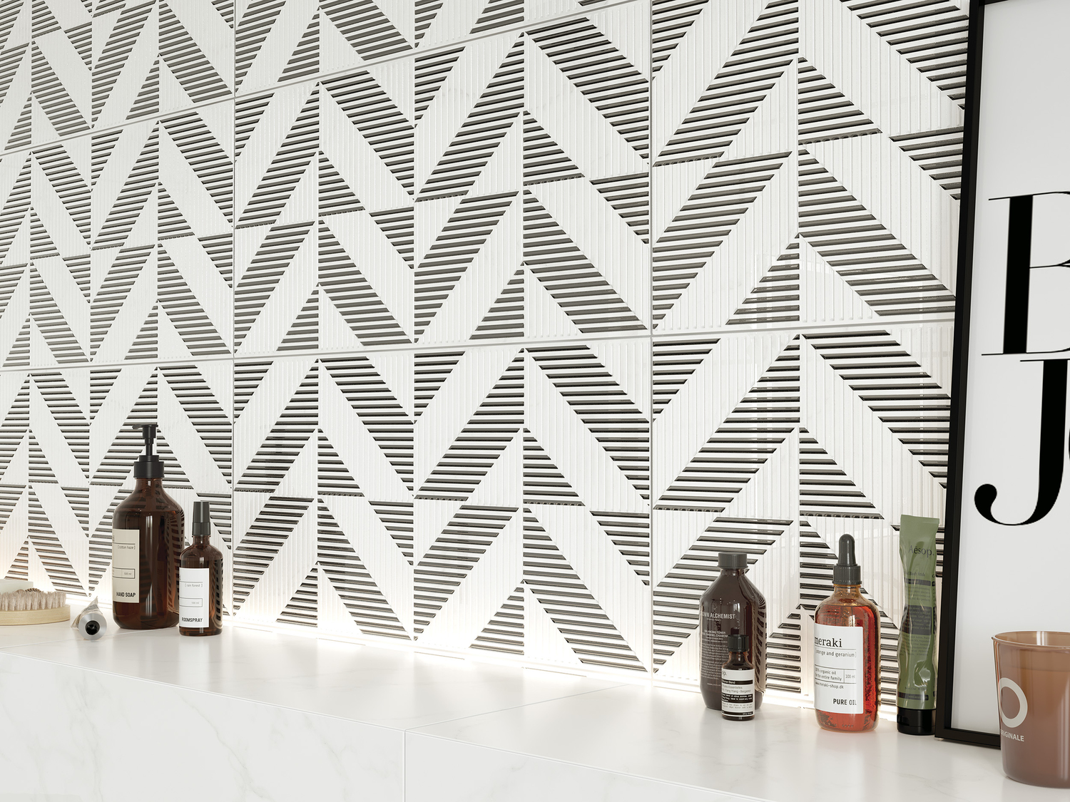 Контрастный микс CALACATTA CHEVRON – это сочетание трендового шеврона, «мрамора» и чёрно-белой гаммы. Геометричный 3D-рисунок нового декора добавляет графичности керамограниту STREAM в трёх вариантах: чёрный, белый и с динамичными полосами, который рекомендуется для укладки на пол. Их можно комбинировать либо использовать по отдельности. Блеск глазури керамогранита перекликается с гранильным рельефом декорации, создавая гармоничное готовое решение. Крупной плиткой формата 30х60 легко и отделывать большие пространства, и зонировать.