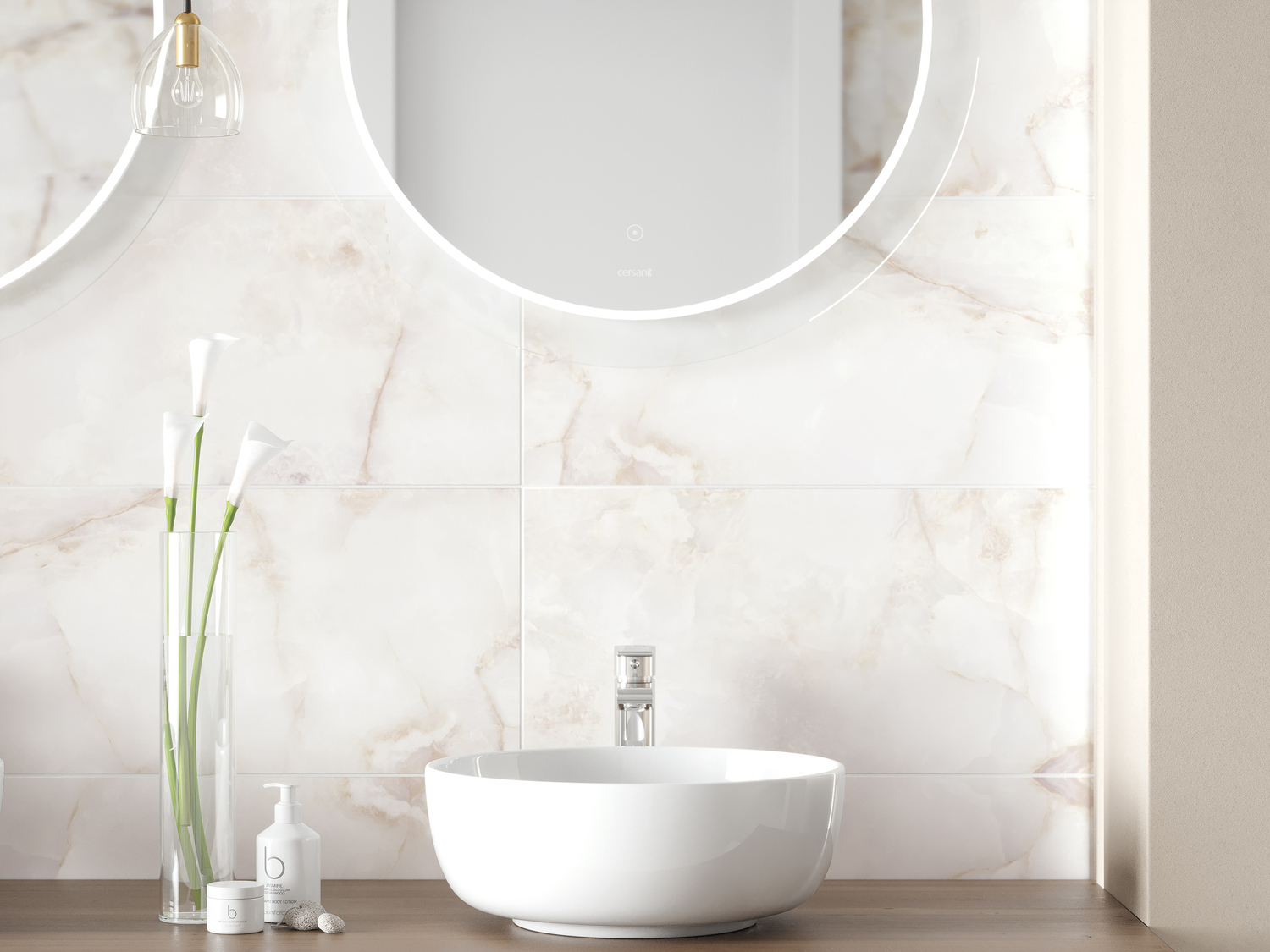 Нежность палитры и замысловатая игра слоистого узора оникса точно переданы в коллекции керамогранита CAMEO формата 30х60 в бежевых тонах. Натуральный камень во все времена использовали, чтобы подчеркнуть элегантность, роскошь и богатство. С керамогранитом CAMEO, точно имитирующим текстуру оникса, сделать это стало намного проще. Карвинг (блеск на поверхности) подчёркивает красоту графики. Многофейсовый дизайн позволяет добиться большей реалистичности. Материал с мягкой сатиновой поверхностью подходит для укладки на пол или на стену. CAMEO великолепен в отделке любых помещений, включая ванную, кухню, коридор, холл, гостиную или спальню.