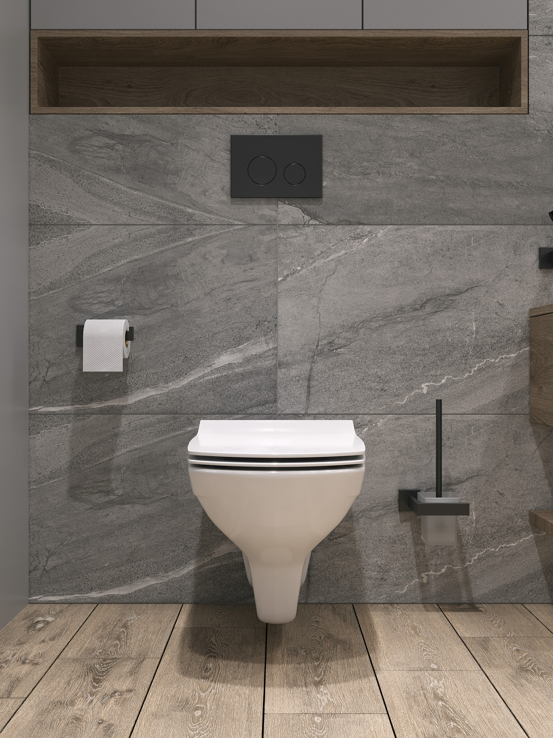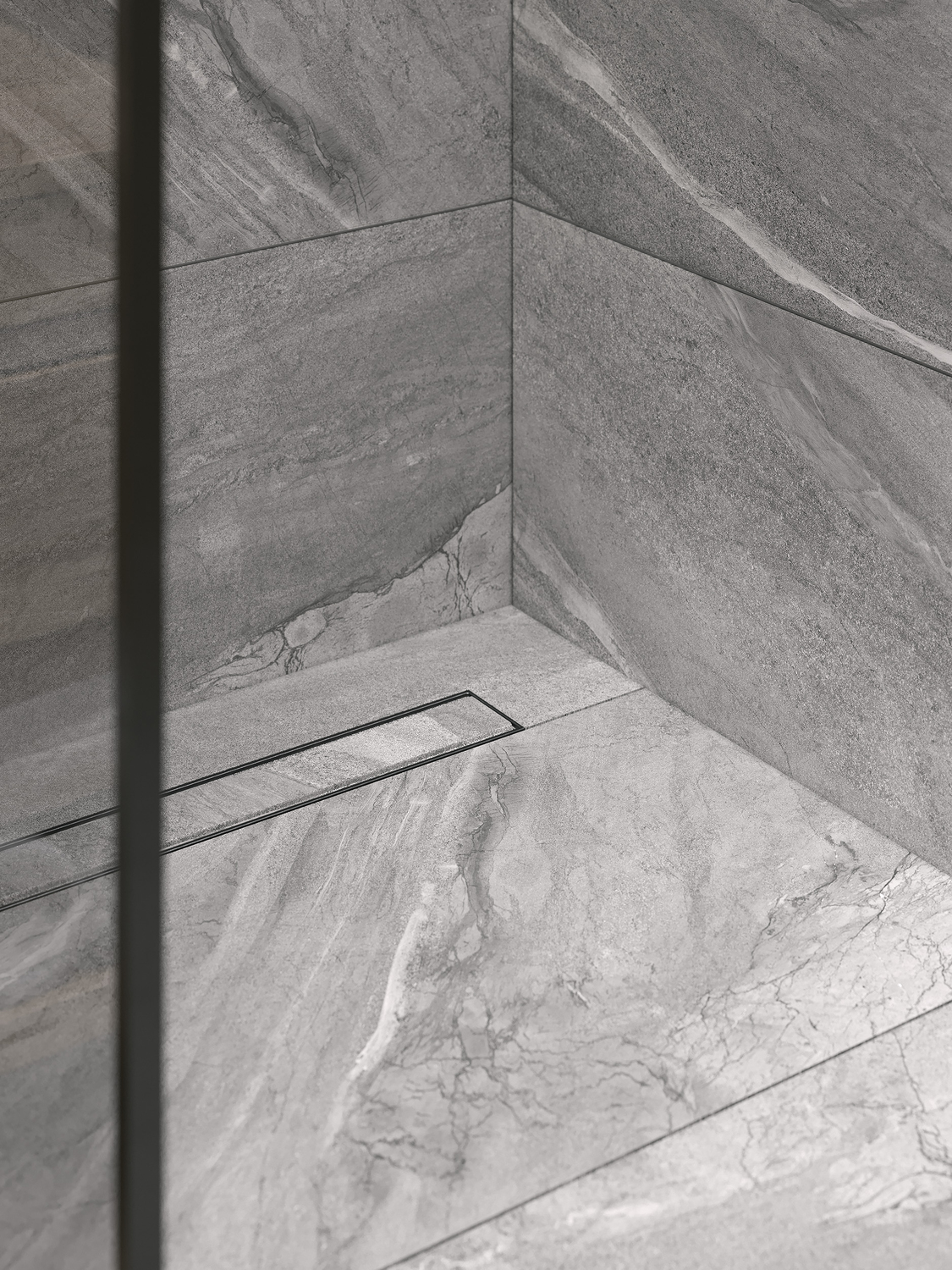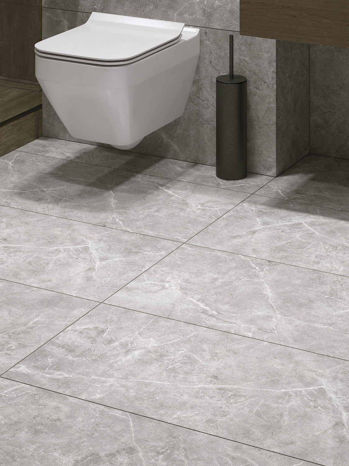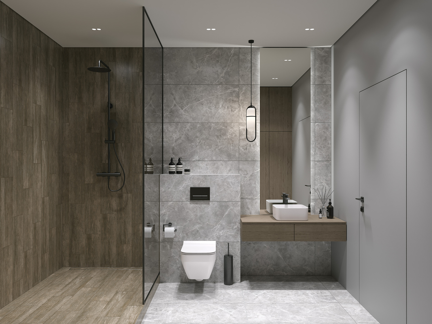 Керамогранит Castello — это реалистичная имитация тёмно-серого камня. Шугар-эффект на поверхности создаёт объём и усиливает натуралистичность покрытия. Керамогранит — идеальное решение для мокрых зон. Этот материал прочен, износостоек, обладает противоскользящим эффектом и не боится влаги. Его можно укладывать вместе с системой «тёплый пол», а уход за ним прост и не требует использования агрессивной бытовой химии.