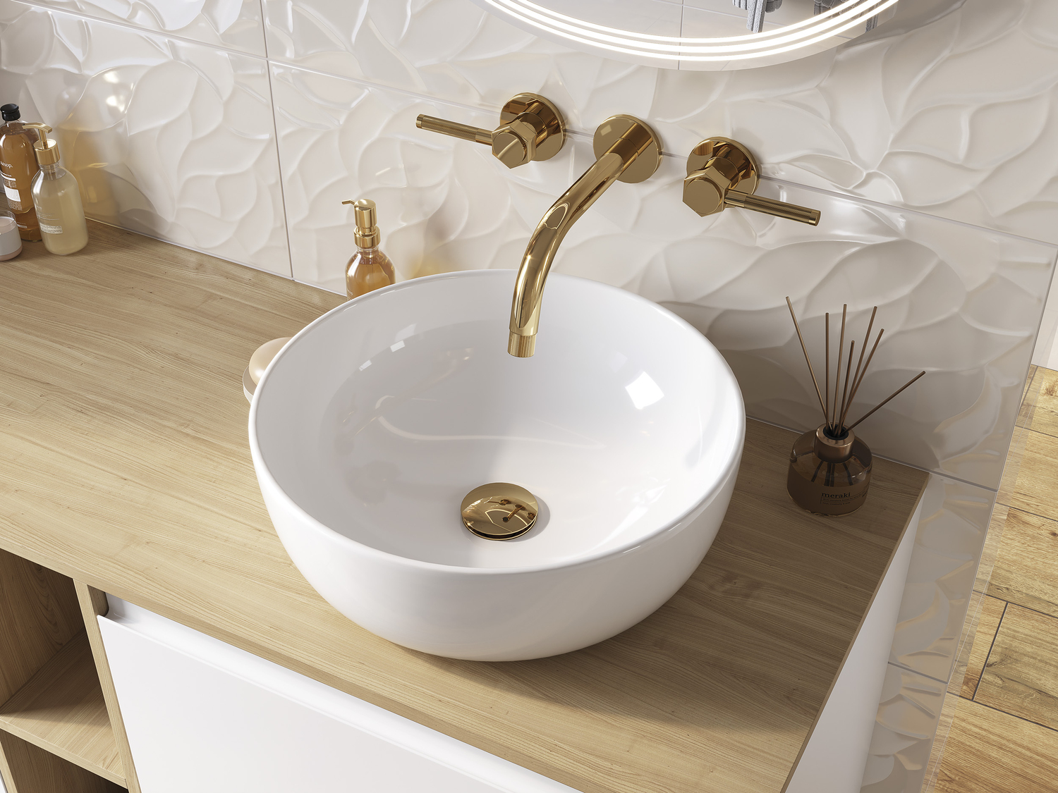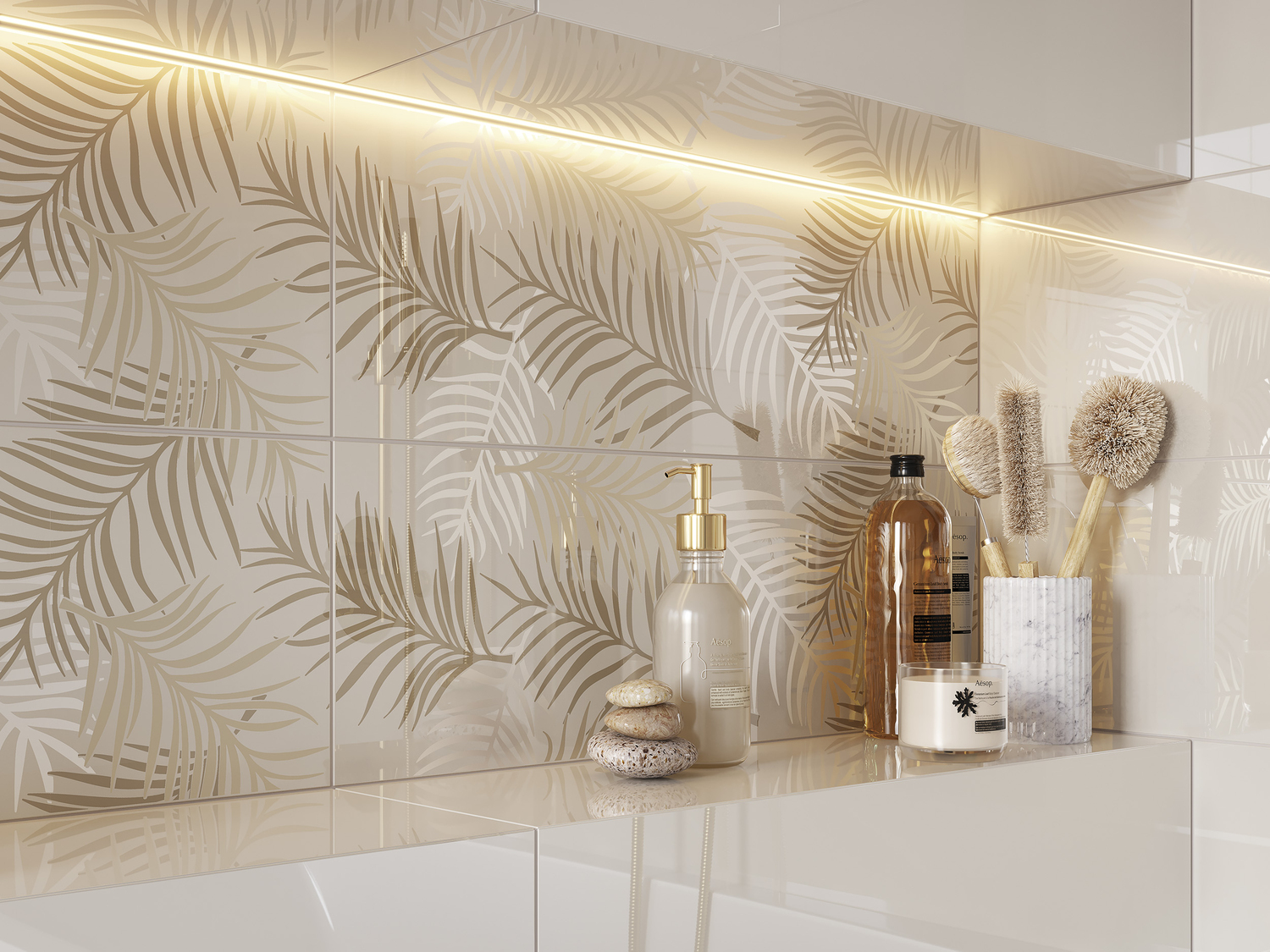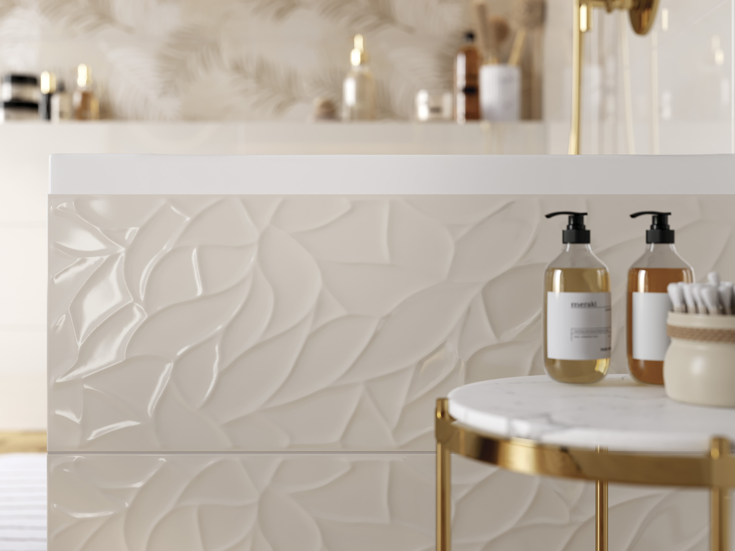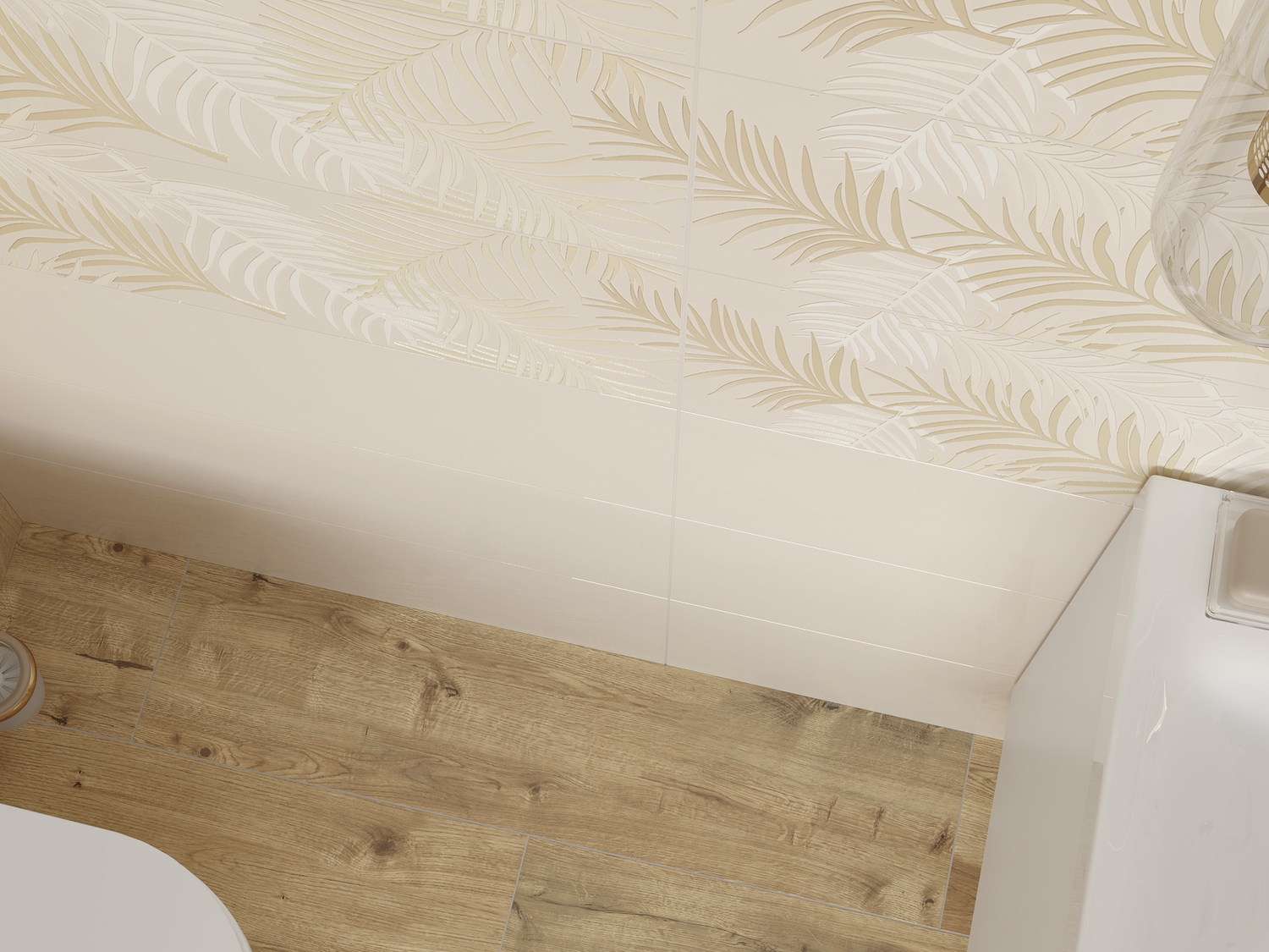 растительные принты, продолжающие мотив рельефной плитки в форме мелких