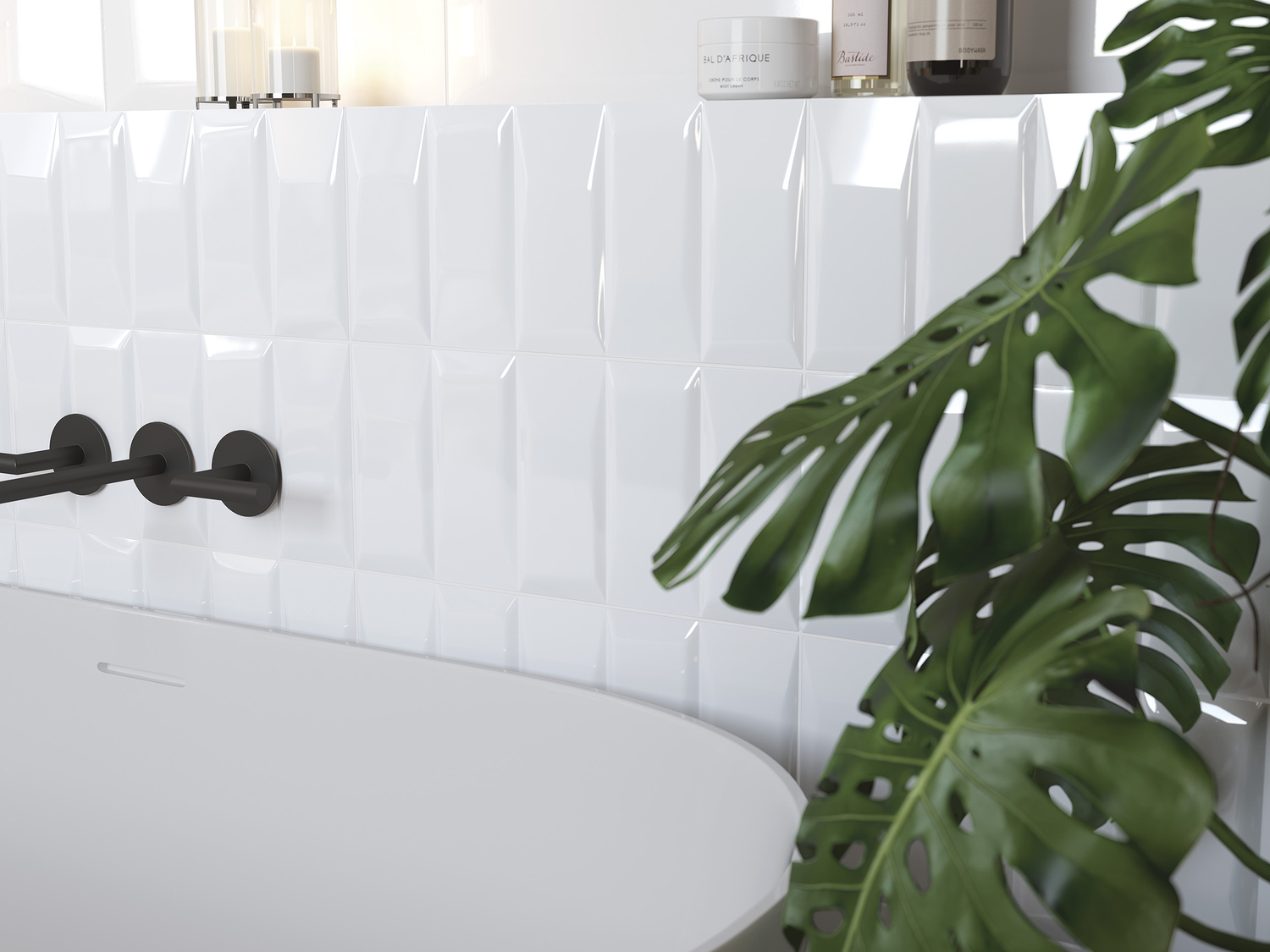 Белый цвет – символ чистоты и свежести. Светлый моноколор идеально подходит как для просторных, так и для небольших помещений. Плитка идеально отражает лучи света. Имитация трендовых «кабанчиков» в сочетании с рельефом «даймонд» создадут нежную игру бликов. Горизонтальная либо вертикальная выкладка такого рельефа позволит скорректировать помещение: вытянуть, расширить, поднять, зрительно увеличить площадь.