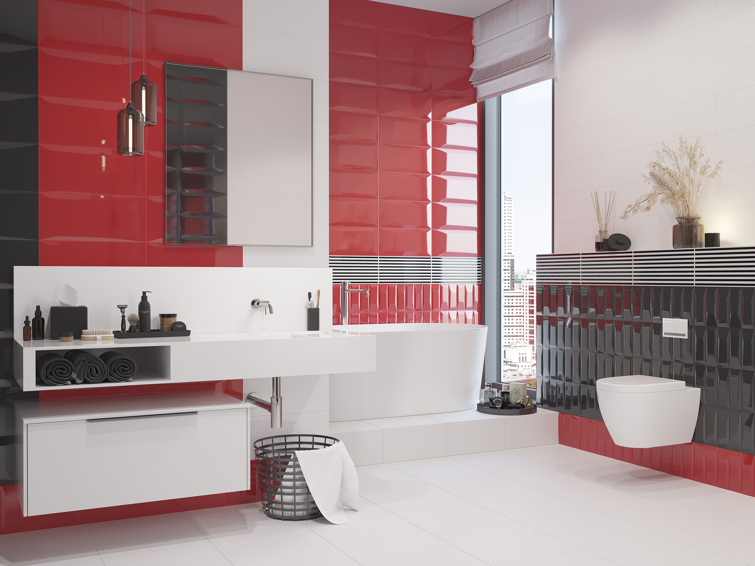 Творческий союз красного, белого и чёрного создаст эффектный контраст в интерьере. «Трио» дополнит энергичный декор с горизонтальными чёрными и белыми полосами, усиливая динамику помещения. Создание вертикальных акцентов поможет сделать его более «стройным» и визуально приподнимет потолок. Горизонтальная выкладка декора визуально расширит пространство, поможет избавиться от «эффекта колодца». Выбирайте один ведущий цвет или распределяйте все три равномерно в зависимости от вашего характера и темперамента. Подобное цветовое сочетание подарит вам массу потрясающих идей.