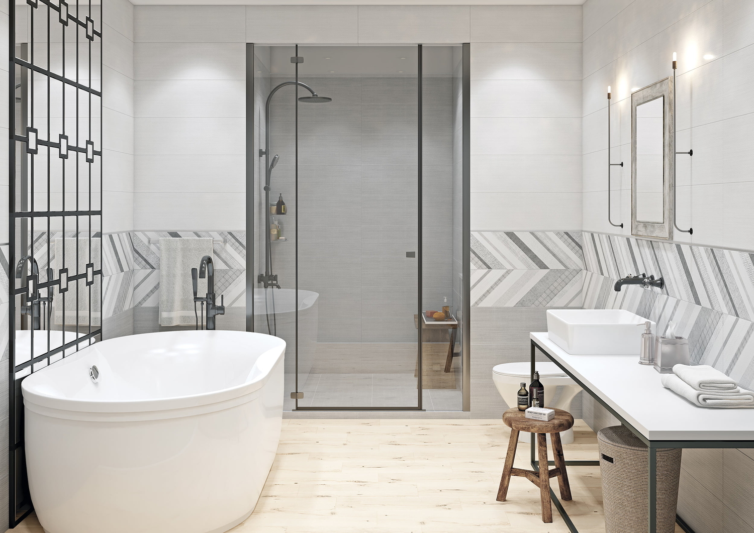 HUGGE (ХЮГГЕ) - это понятие означает способность ценить обычные удовольствия и наслаждаться моментом. В этой коллекции воплощены уют и комфорт, защищенность и умиротворение. Коллекция предоставлена облицовочной плиткой двух оттенков серого цвета с сатиновой поверхностью и декоративными вставками с рисунком, имитирующим вязаную ткань теплого пледа.