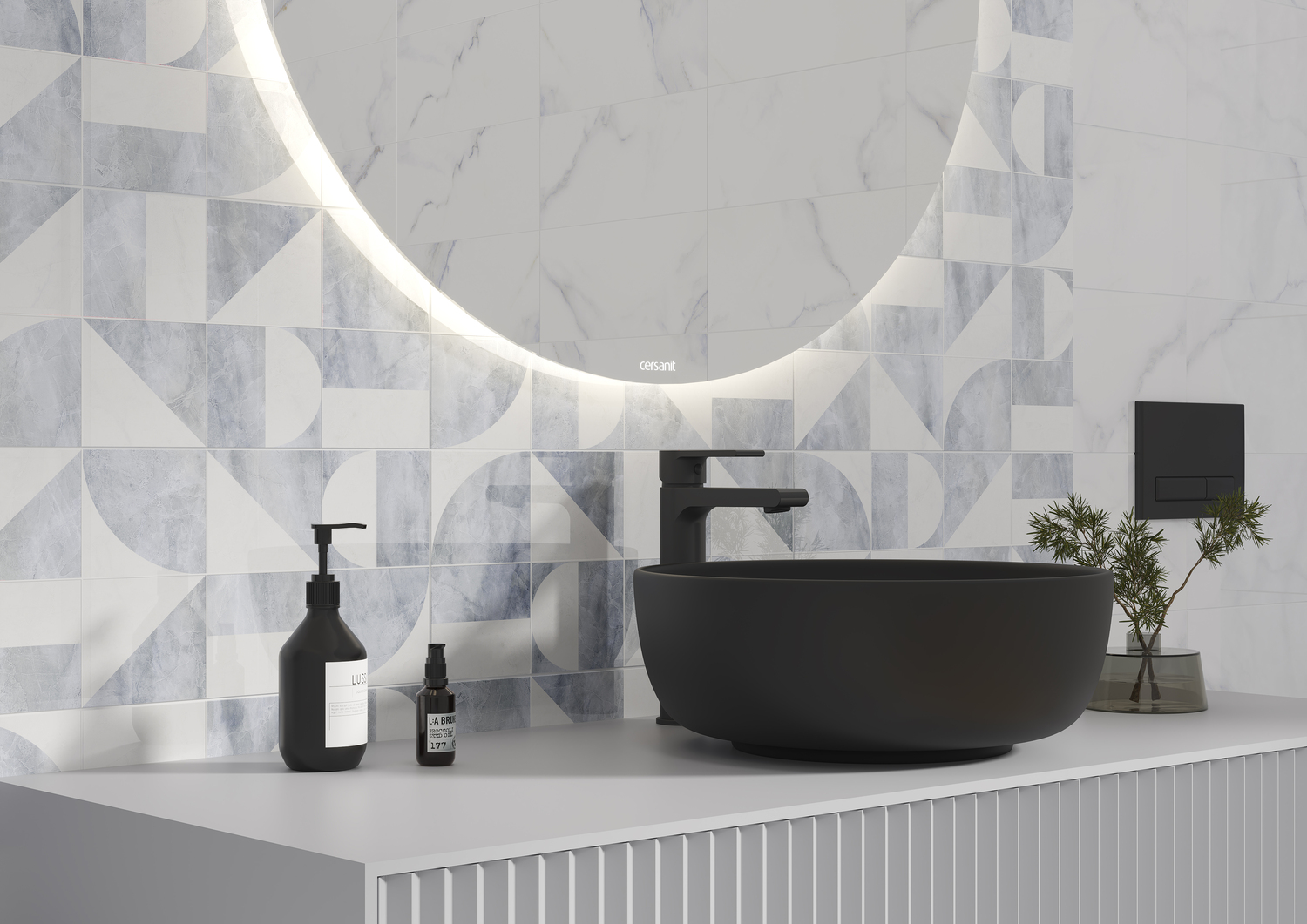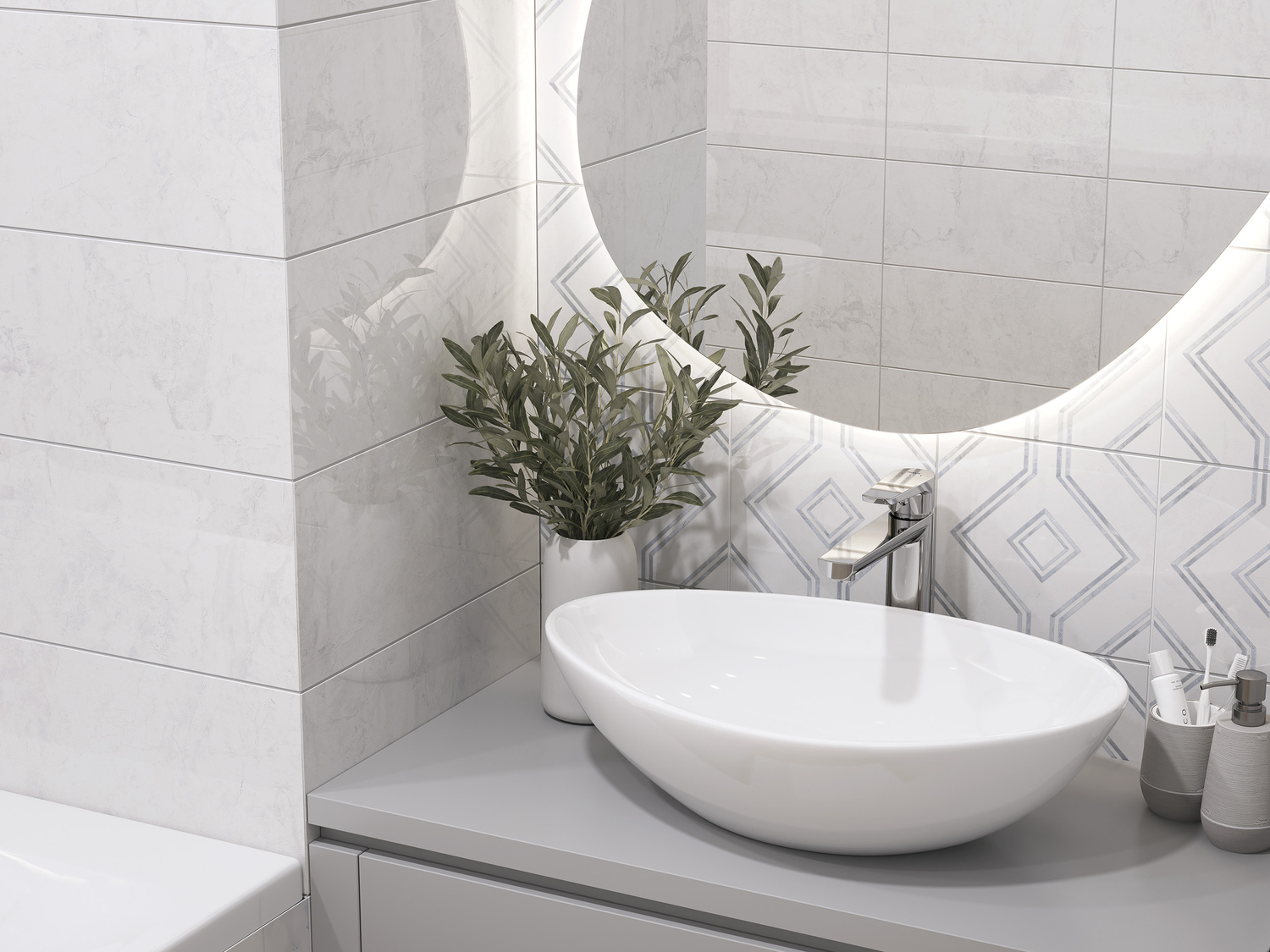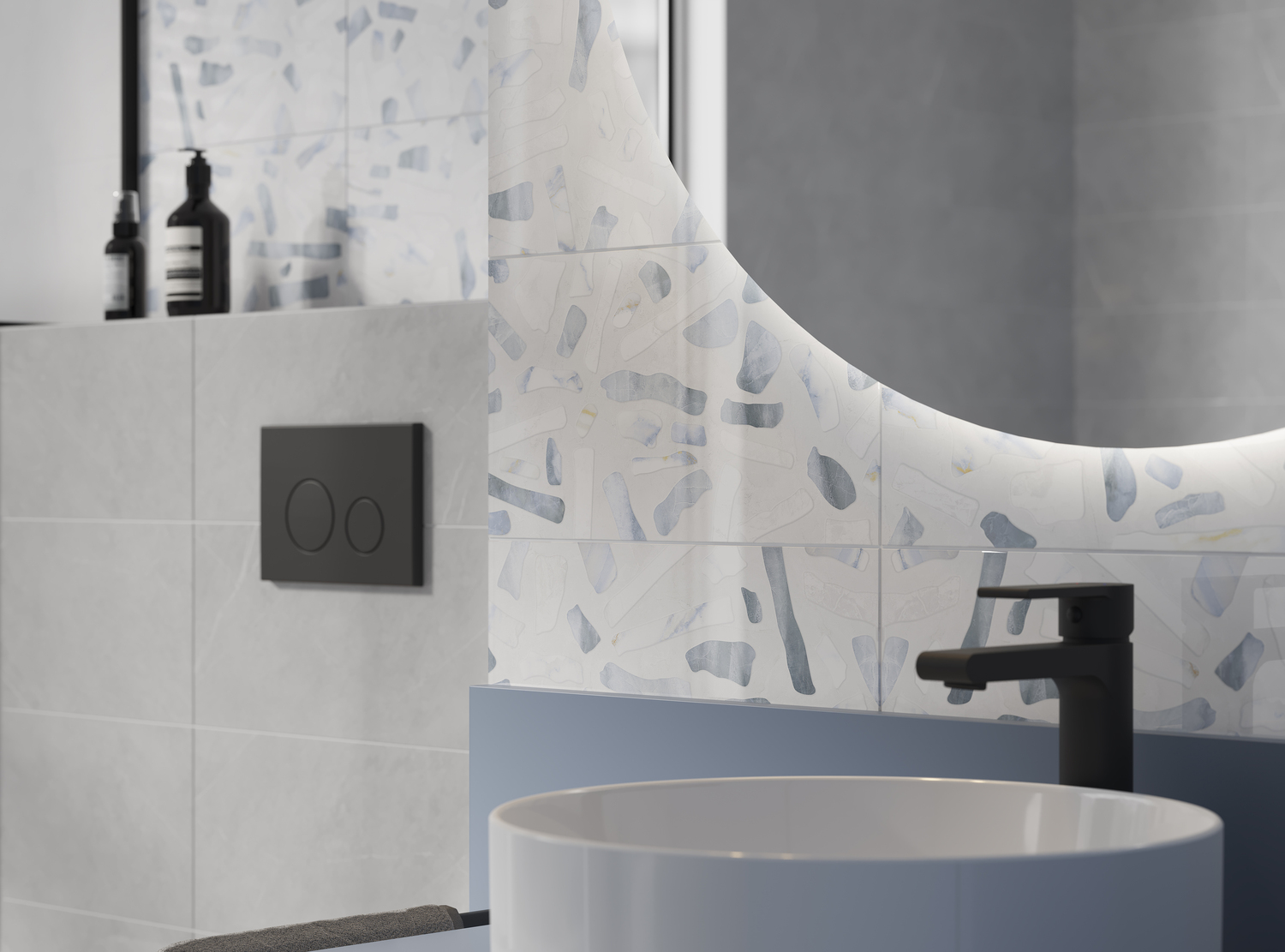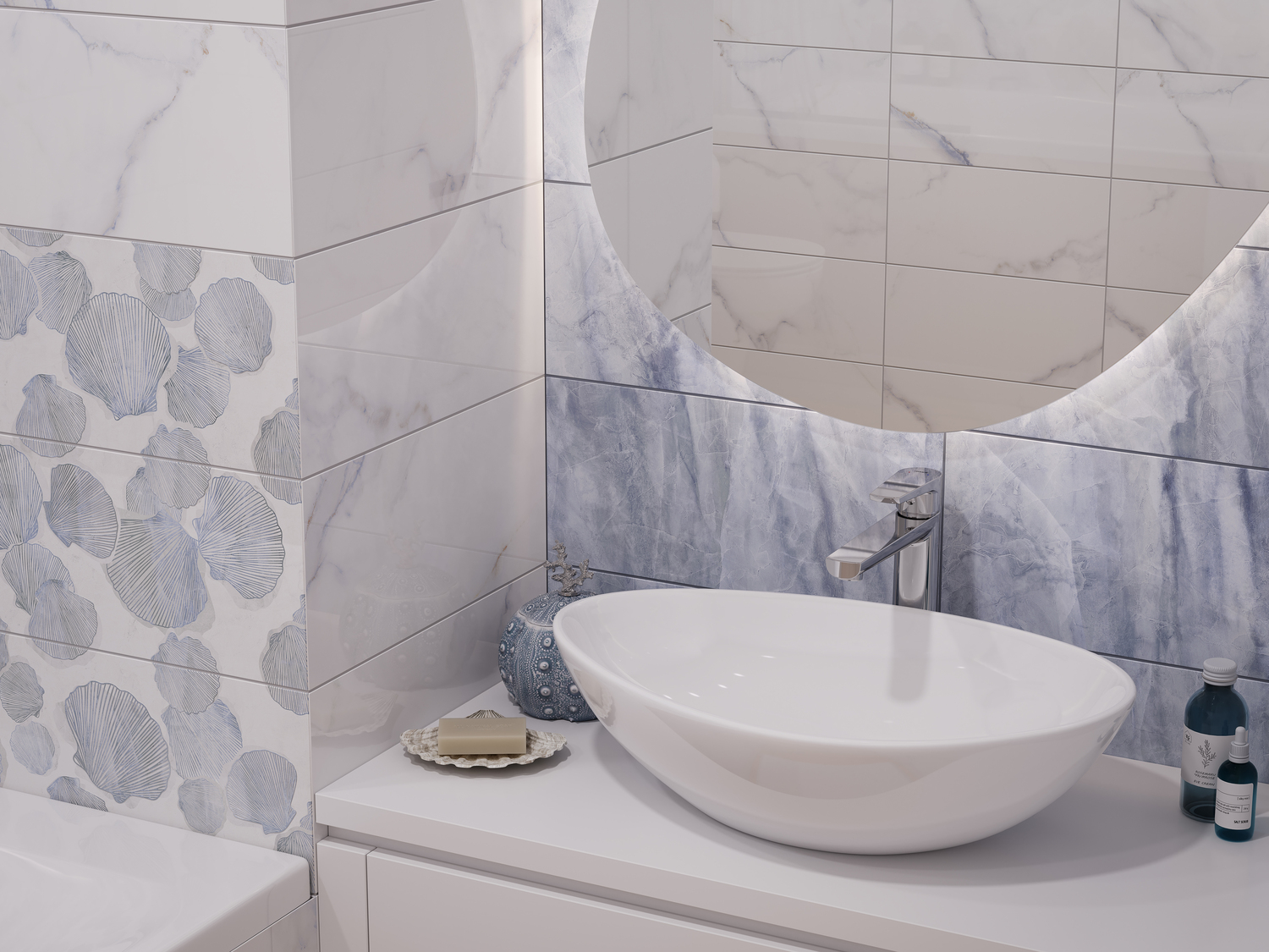 Морская тематика подана в современном прочтении в коллекции настенной плитки Mare. Особое настроение коллекции сбалансировано её универсальным характером. В основу легли трендовые текстуры под камень и спокойные оттенки базовой плитки. Ее дополняет декоративная плитка на м2 с акцентными решениями: ракушками, пэтчворк, терраццо и геометрическими фигурами. Все элементы коллекции сочетаются между собой и могут быть использованы в любых вариациях.
