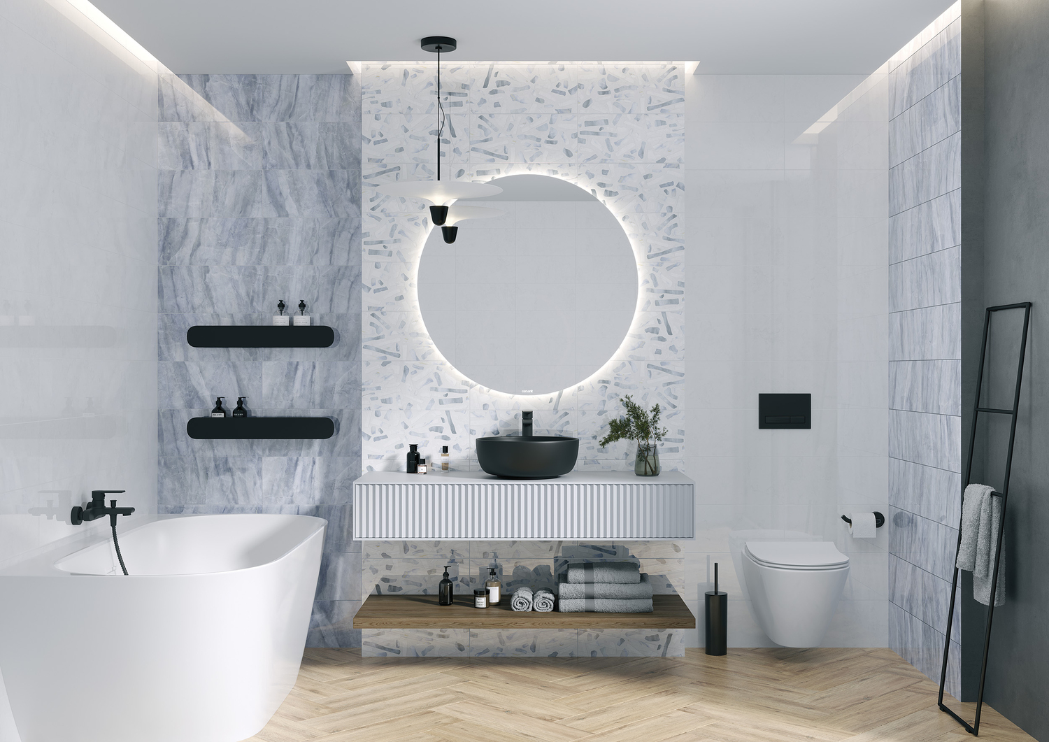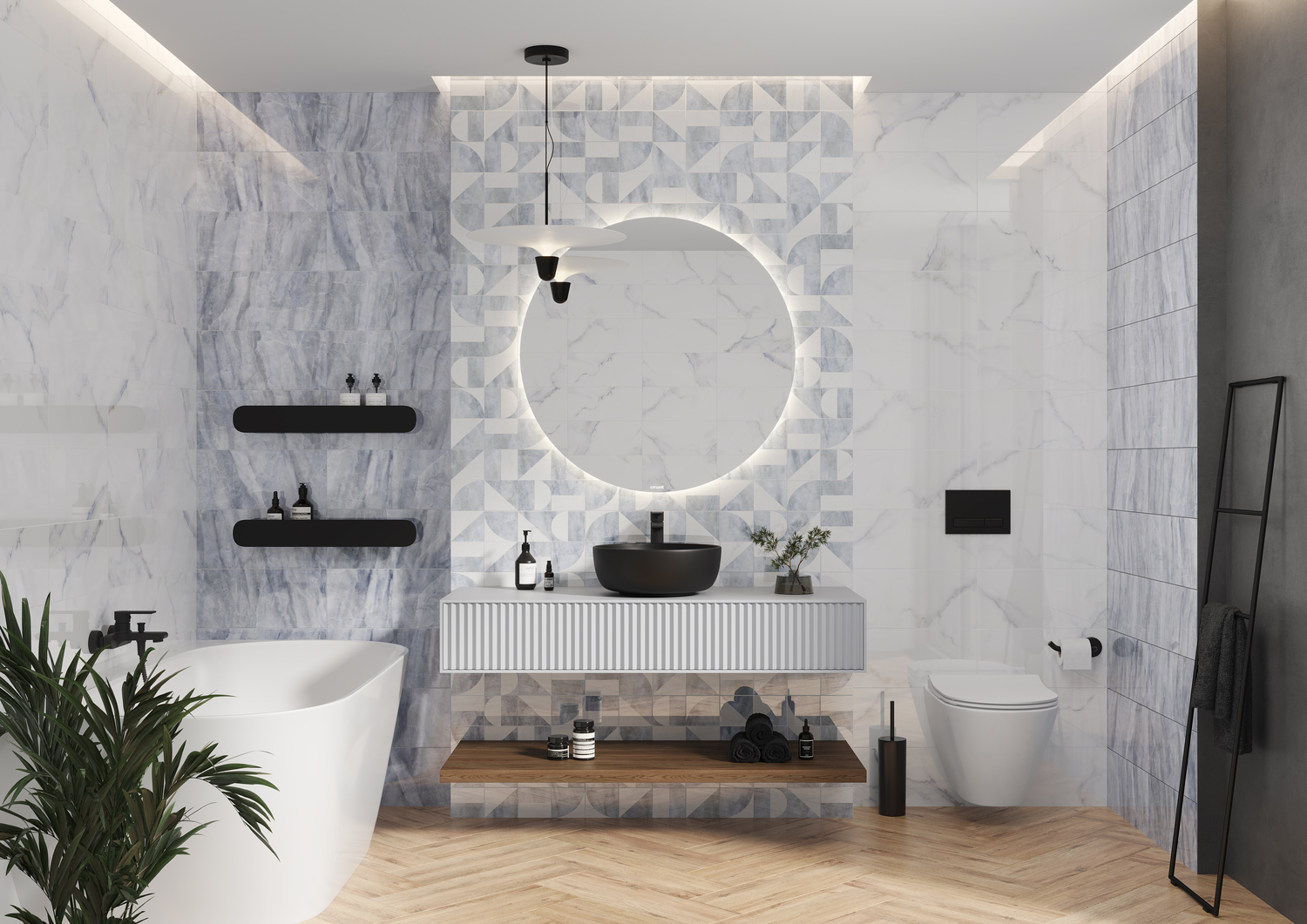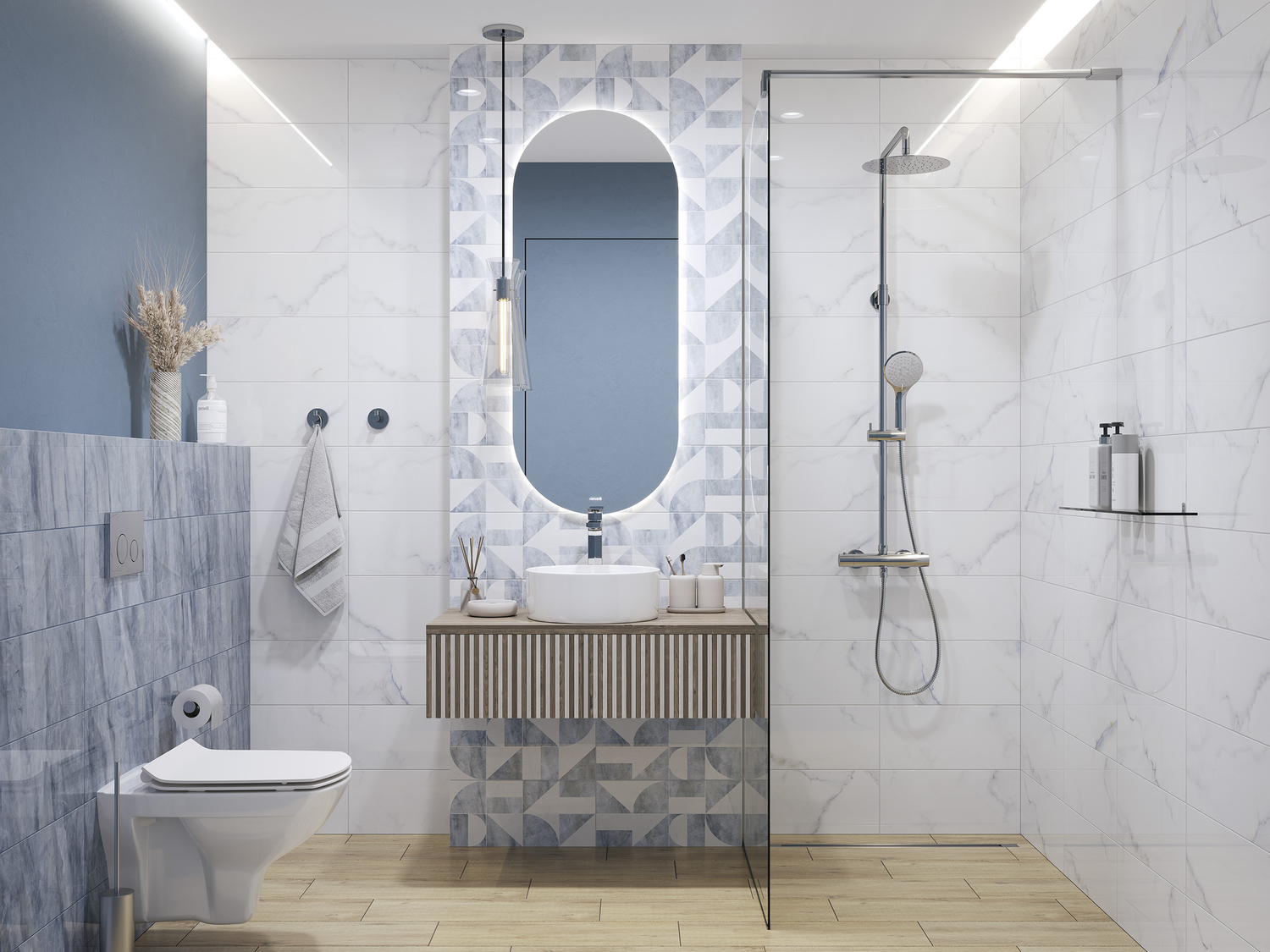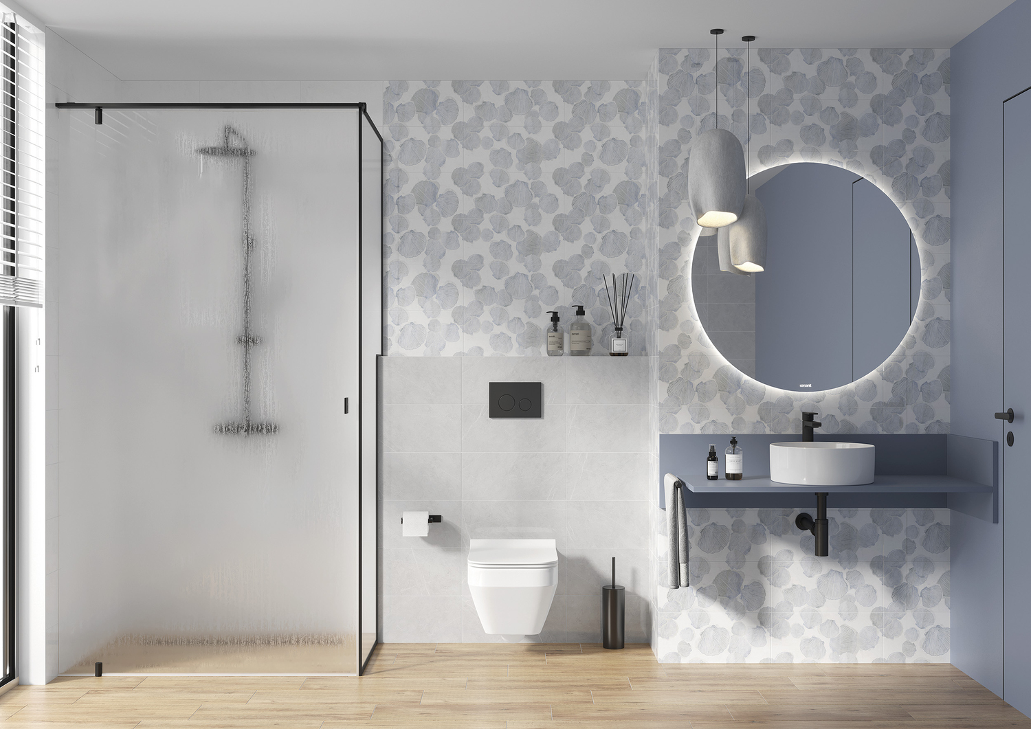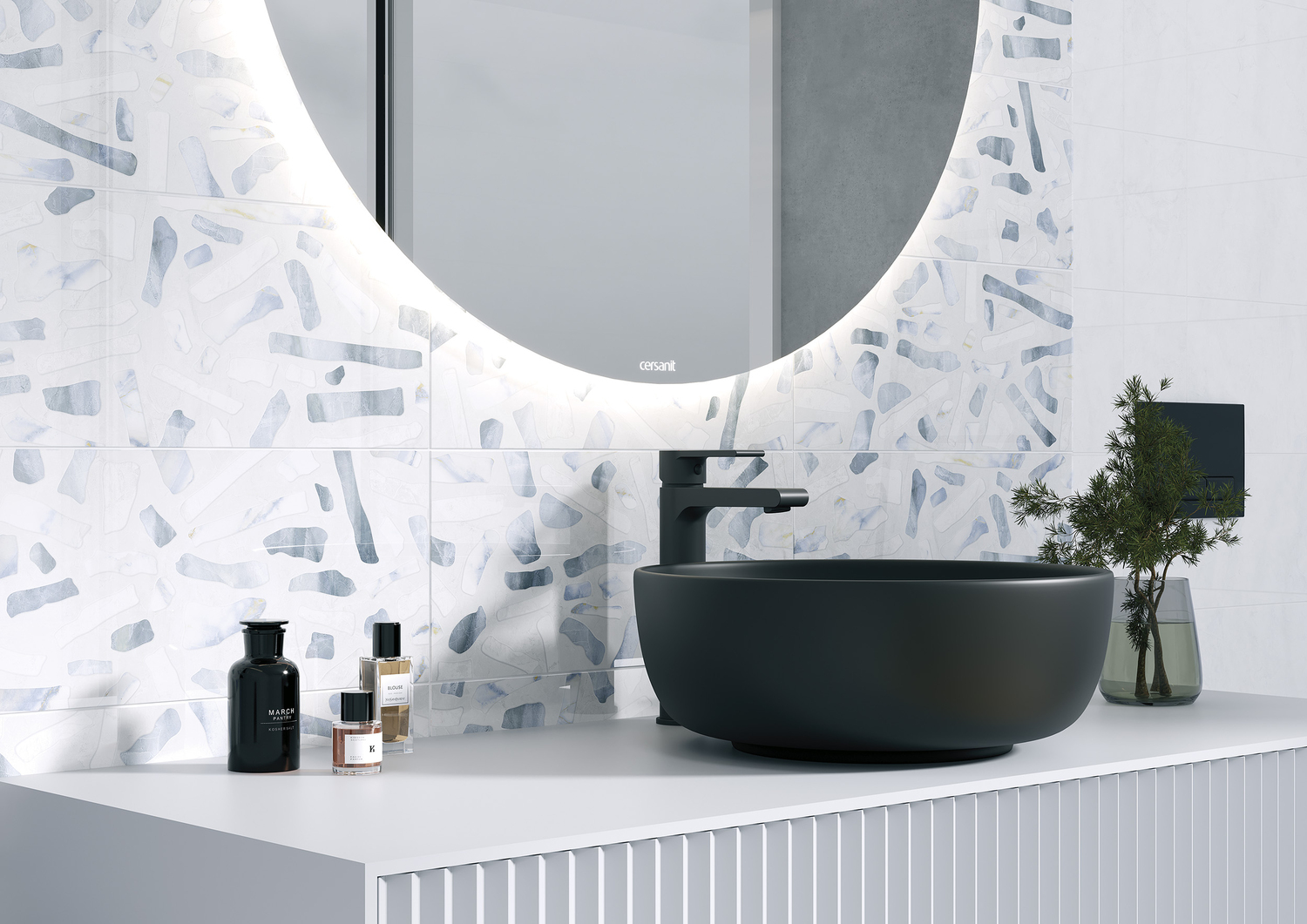 Морская тематика подана в современном прочтении в коллекции настенной плитки Mare. Особое настроение коллекции сбалансировано её универсальным характером. В основу легли трендовые текстуры под камень и спокойные оттенки базовой плитки. Ее дополняет декоративная плитка на м2 с акцентными решениями: ракушками, пэтчворк, терраццо и геометрическими фигурами. Все элементы коллекции сочетаются между собой и могут быть использованы в любых вариациях.