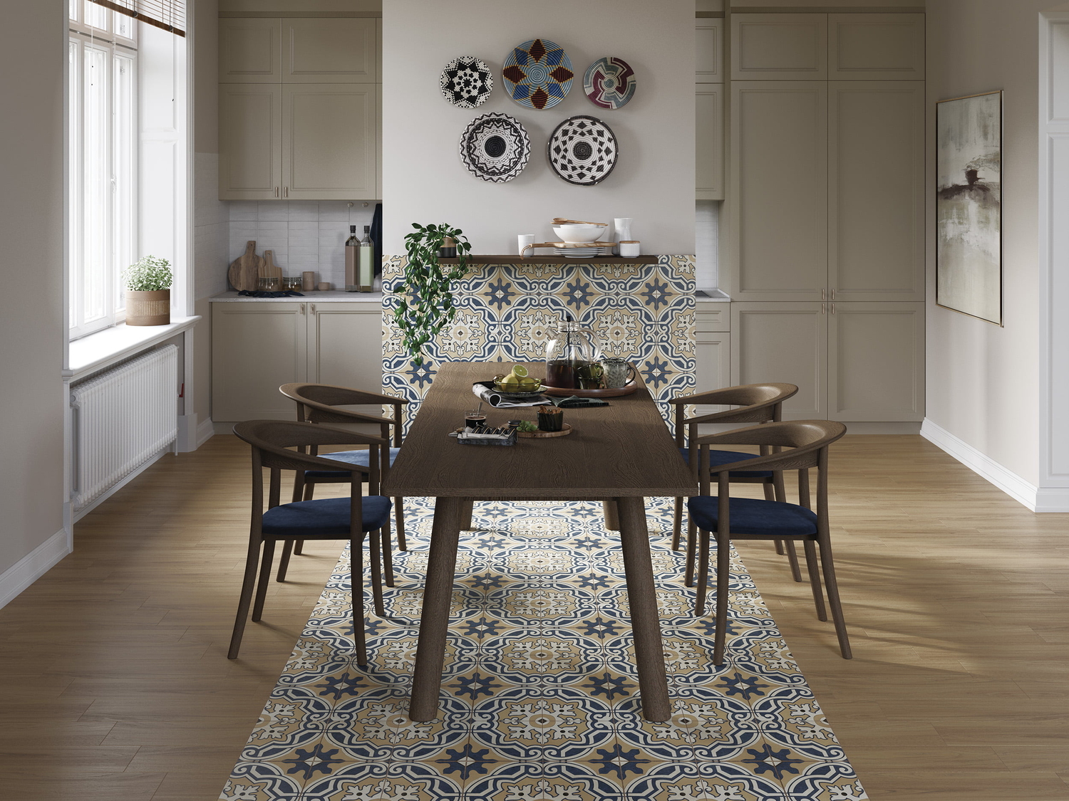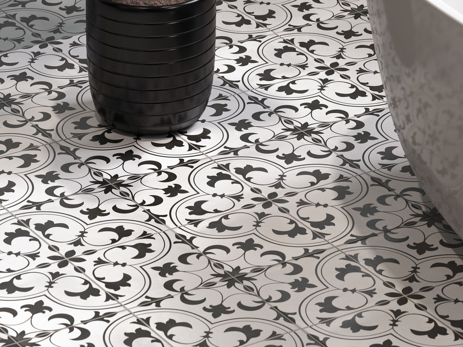 Вдохновением для создания коллекции SEVILLA стала энкаустическая цементная плитка, изобретённая цистерцианскими монахами ещё в 12 веке. Плита имитирует формат 20х20, что в сочетании с изящными орнаментами придаст интерьеру романтичное винтажное настроение. Витиеватый чёрно-белый растительный узор – отсылка к знаменитой метлахской плитке в современном исполнении – позволит чётко зонировать пространство или расставить акценты. Универсальный дизайн идеально подойдёт для интерьера любого помещения: кухни, санузла, жилых комнат, коридора и веранды.