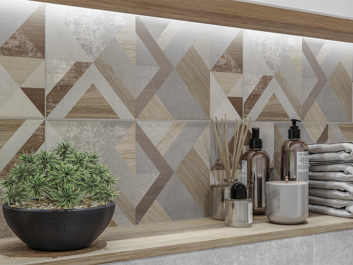 Естественная и динамичная коллекция настенной плитки Urbano создана для тех, кто ценит соприкосновение с природой, но любит жить в городе с его урбанистичной бетонной эстетикой. Плитка с плоской и рельефной поверхностью создаёт игру света и объёма в пространстве. Этот эффект поддерживает и блеск на поверхности декора — панно с растительной тематикой. На пол дизайнеры рекомендуют уложить «бетонные плиты» или «деревянные доски» керамогранита для завершения задумки.