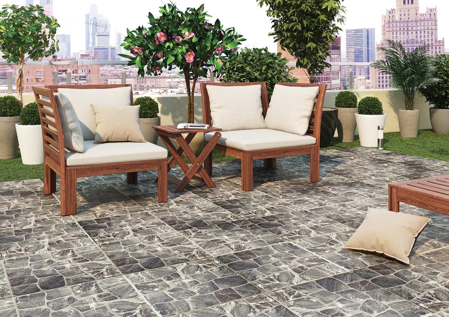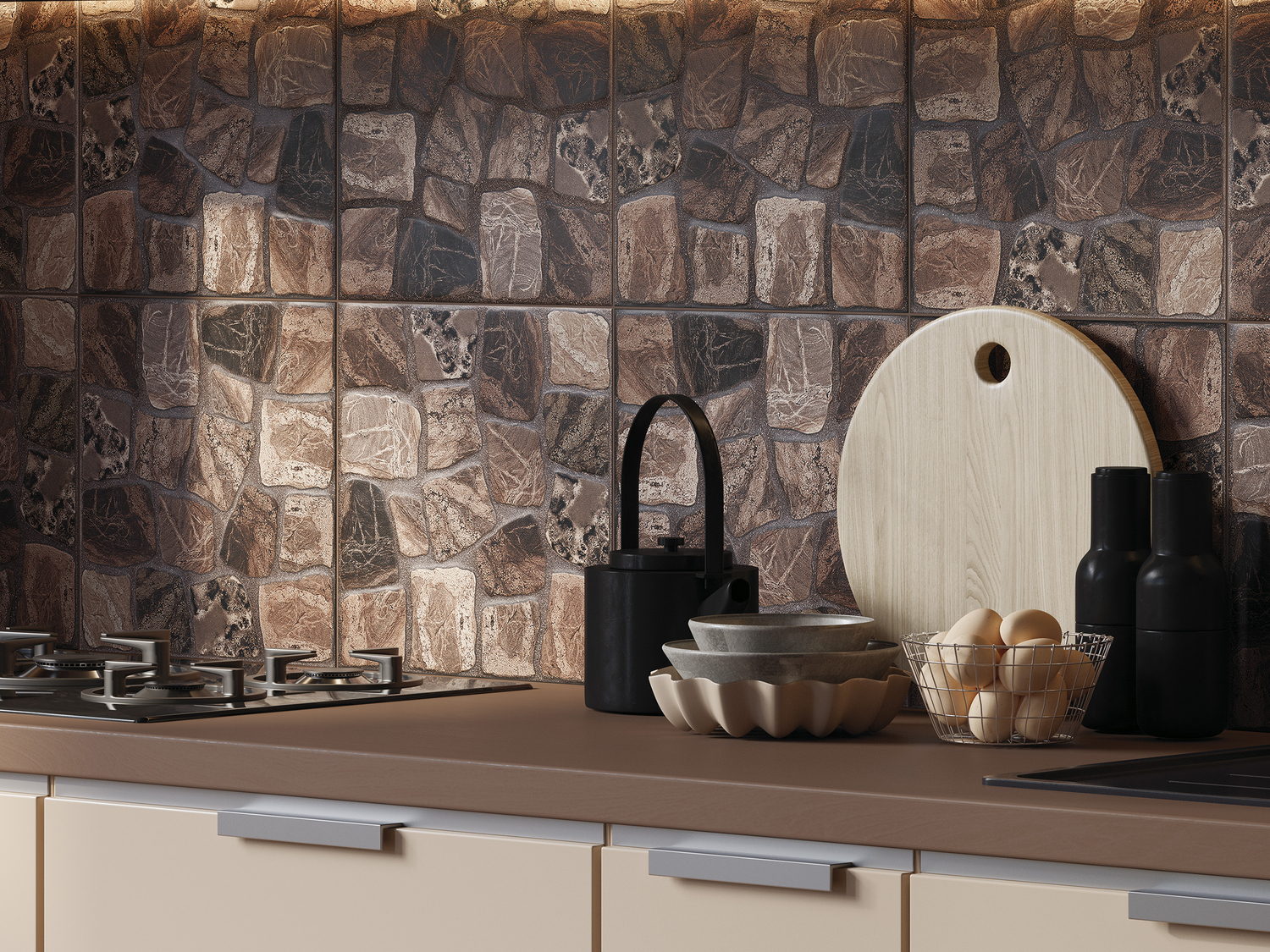 Коллекция VILIO имитирует кладку из натурального камня в сочетании с деревом и идеально подходит для оформления пола кухни, террасы, холла или балкона. Глазурованный керамогранит выполнен по технологии цифровой печати. Поверхность плитки имеет выраженный рельеф, что делает рисунок более реалистичным. Плитка покрыта защитным слоем, не скользит, устойчива к перепадам температуры и морозу, поэтому может использоваться на открытых площадках