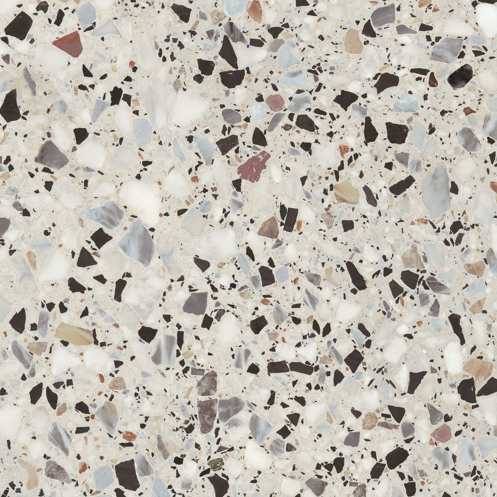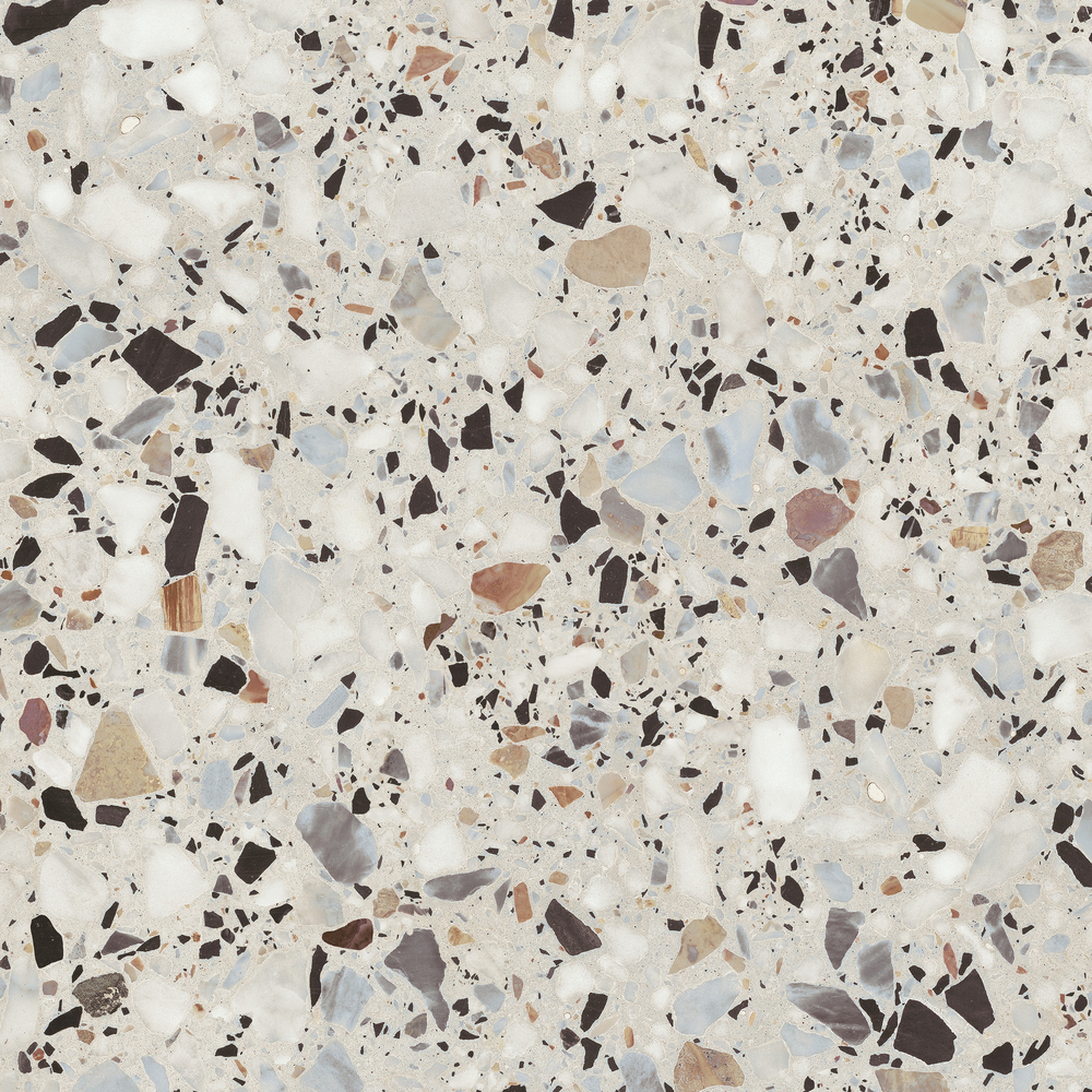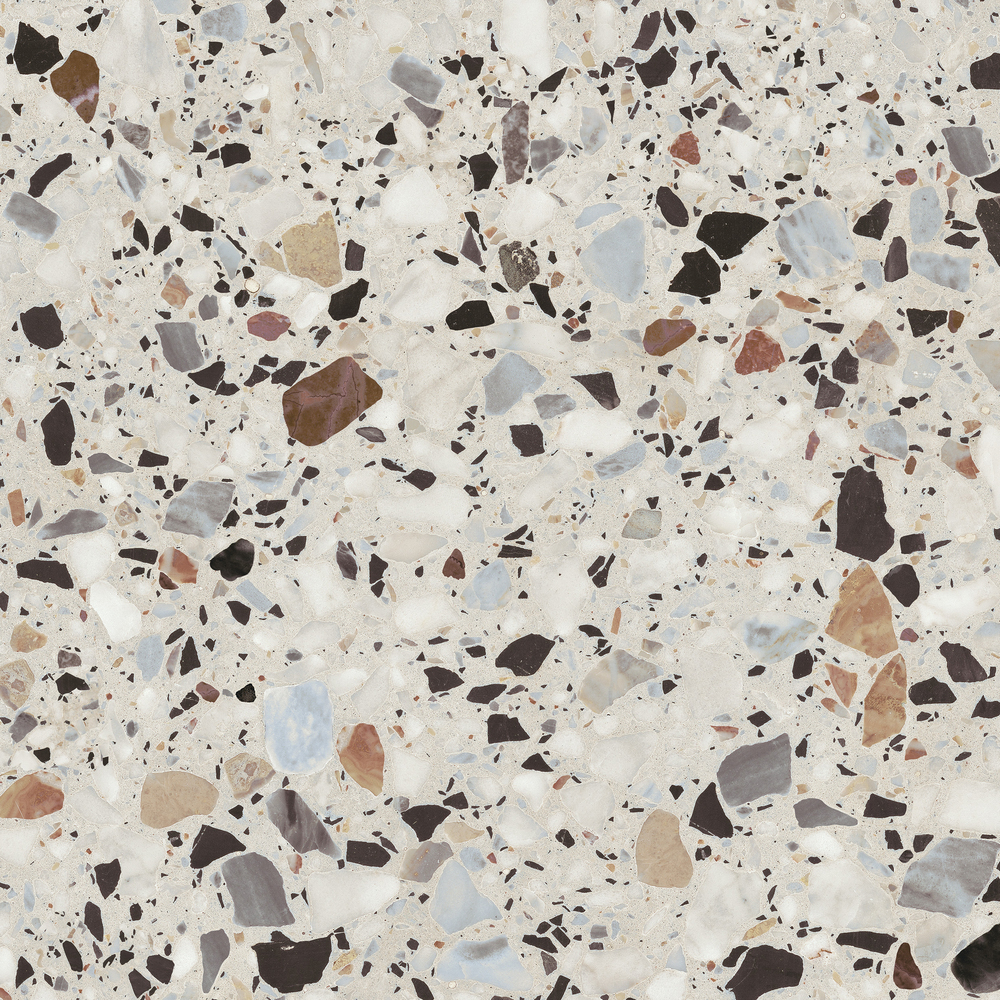Керамогранит Fancy Stone имитирует роскошный венецианский терраццо – бесшовный мозаичный пол из мраморной и каменной крошки, скреплённой цементом в единый холст. Динамичный рисунок из вкраплений разного цвета и размера обладает высокой декоративностью и дает широкий простор для творчества. Это универсальное покрытие позволяет выкладывать ванную комнату от пола до потолка или акцентировать отдельные зоны как в жилых, так и в коммерческих помещениях. Интерьер идеально дополнят аксессуары и мебель самых разных оттенков.