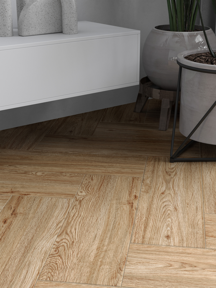 Для создания уютных домашних интерьеров подойдет бежевый керамогранит Grace. Его ненавязчивый светлый оттенок, эффектный узор и микрорельеф на поверхности подарят комфорт любому пространству. Формат деревянной доски усиливает ощущение натуралистичности, а потому любое помещение, которое отделано этим материалом, становится домашним и природным.