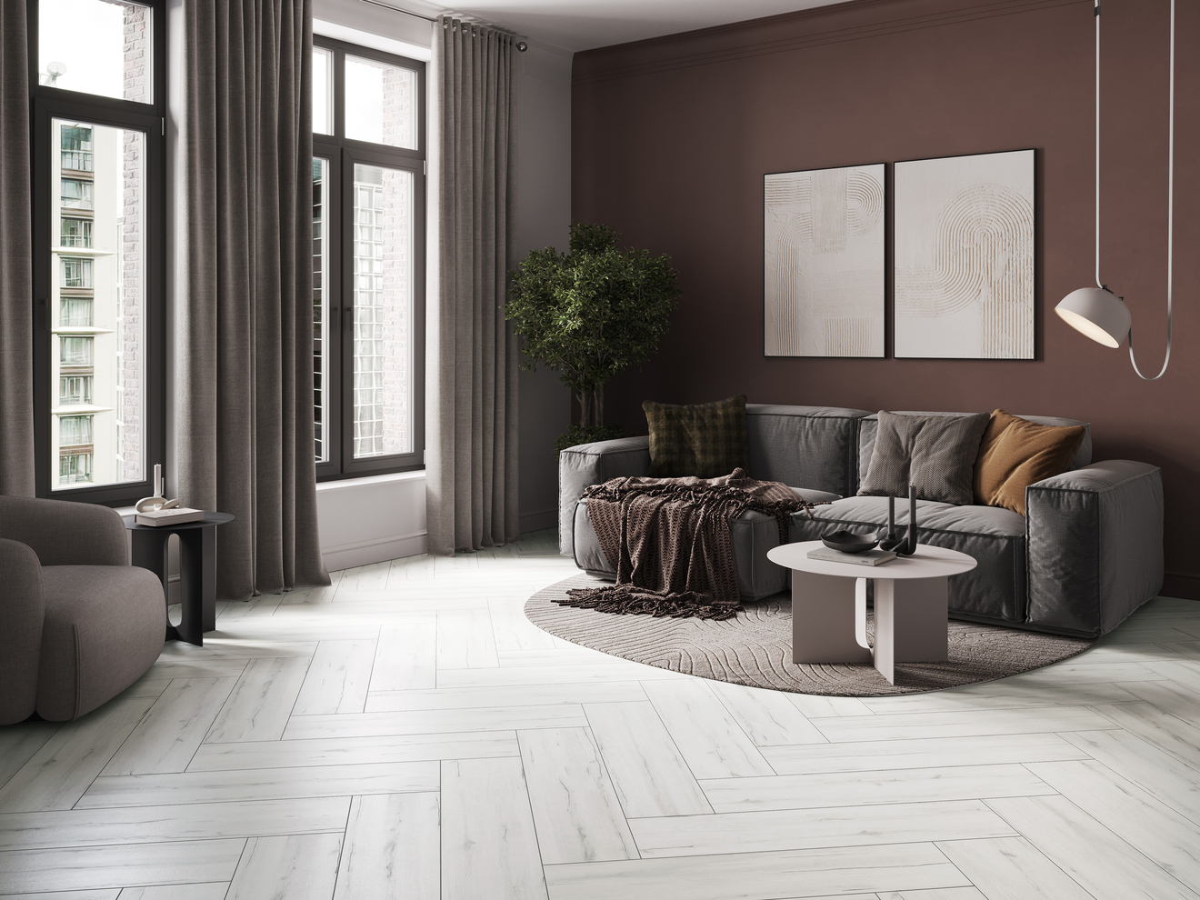 Керамогранит Interio в светлом оттенке наполнит пространство ощущением свежести и чистоты. Этот практически белый цвет с лёгким древесным подтоном визуально расширяет помещение, наполняя его воздухом и светом.