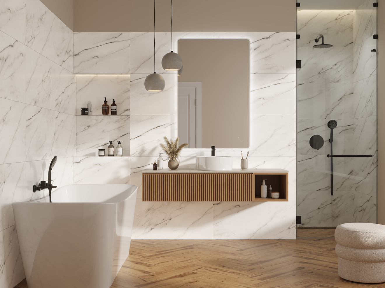 Белый стильный керамогранит Soft под мрамор украсит любой современный интерьер ванной комнаты, кухни, гостиной и прихожей. Матовая плитка, имитирующая мрамор, с деликатными прорезающими прожилками не перетягивает на себя внимание. Она органична, изящна и наделяет этими свойствами всё пространство.
