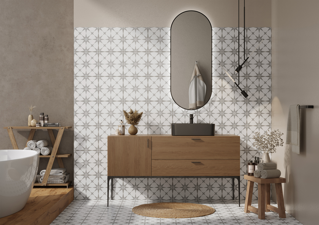 Керамогранит Starlight формата 30х30 — это сияние идеальных пропорций. Плитка со звездным пэчворк-узором привносит в интерьер космическую романтику, превращая любое пространство в утончённую игру света и тени. Рисунок динамичен, но ненавязчив благодаря приглушенному оттенку. Материал идеально сочетается с деревом и натуральными текстурами и в своём тандеме органично смотрится как на стене, так и на полу.