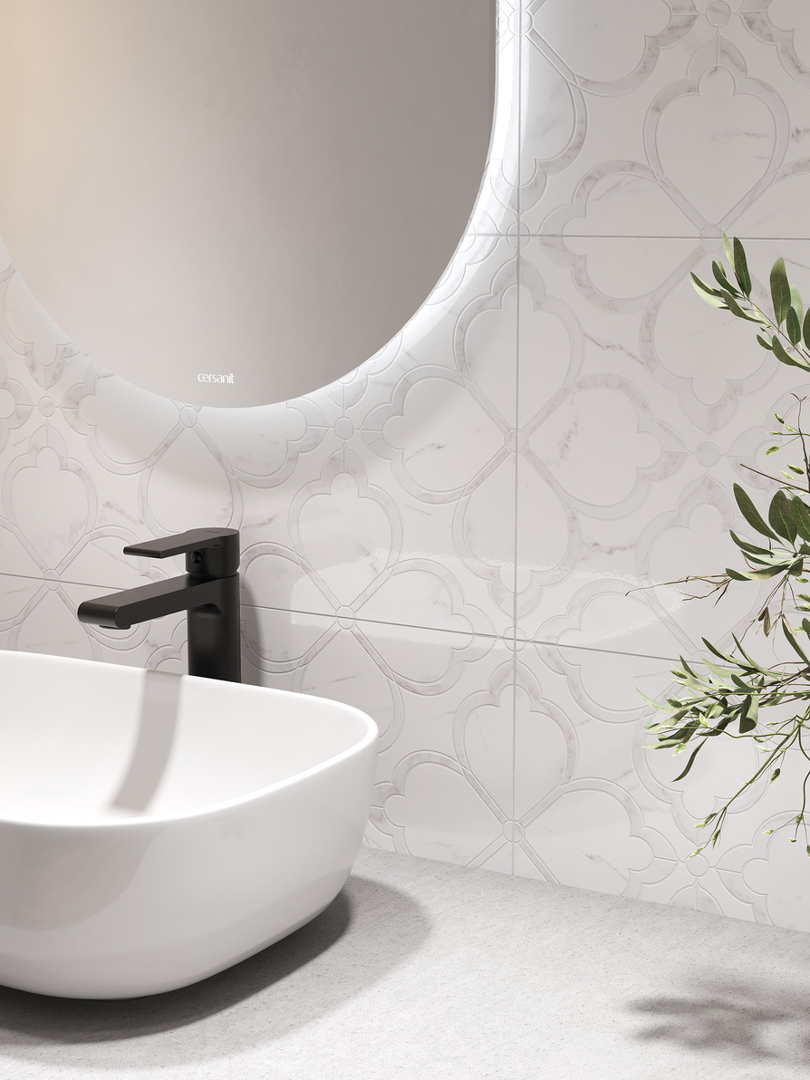 Плитка Carina поможет воссоздать классический интерьер. Высокоточная цифровая печать делает рисунок натурального камня объёмным, глубоким и естественным. Базовую плитку под камень дополняет декор с эффектом микрорельефа, подчёркнутым абстрактным узором в виде инкрустации геометрических фигур или цветов.