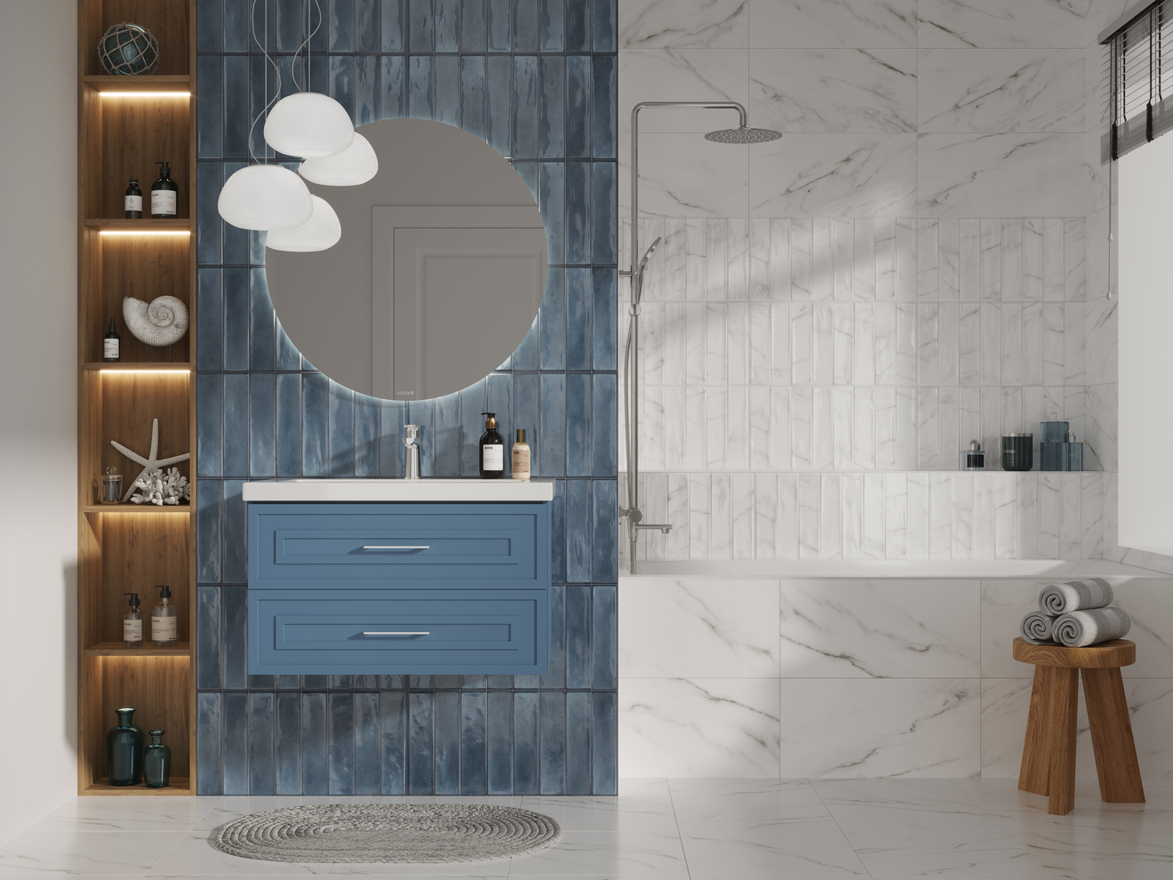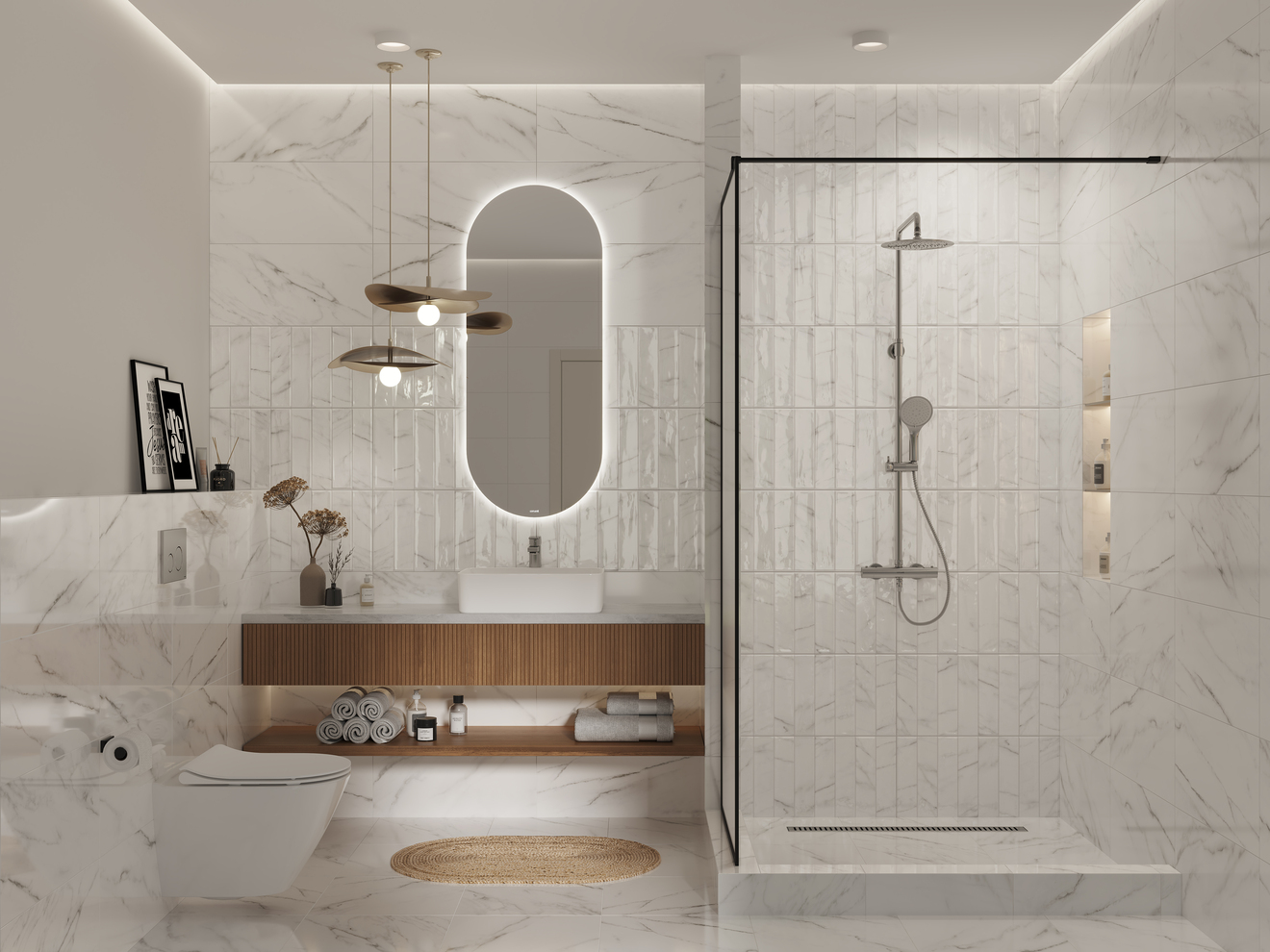 Холодный белый мрамор Cascada поможет создать классический современный интерьер. Его можно укладывать на все стены, и это решение не утяжелит интерьер благодаря тому, что плитка обладает деликатным рисунком.