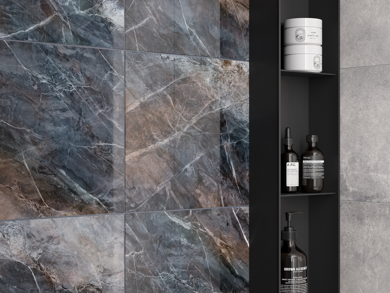 Многогранный цветной камень в эффектных сине-охристых оттенках стал основой дизайна настенной плитки Cascada. Эффектные переливы придают ему динамику, которая оживляет весь интерьер. Материалы под камень — универсальное дизайнерское решение, которое подходит для отделки современных интерьеров. Плиткой со столь эффектным узором можно выделять функциональные зоны, выгодно подчеркивая архитектуру или творческую идею пространства.