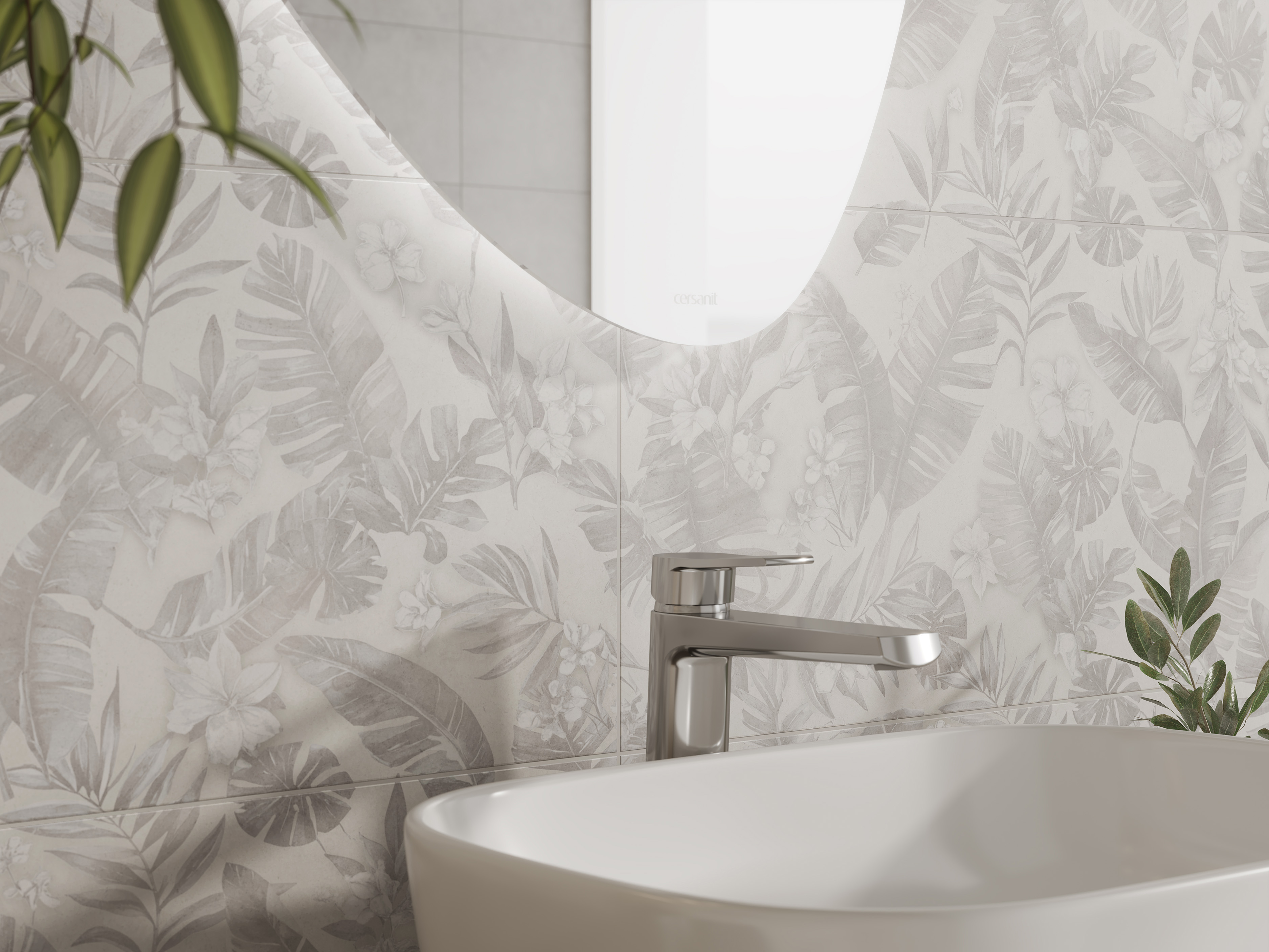 Декоративный фон Liana с застывшими на камнях джунглями связывает две диаметрально противоположные темы — практичного урбанизма и природной естественности. В этом дуэте рождается спокойная и стильная эстетика, неподвластная времени. Рисунок стыкуется со всех сторон, что снимает ограничения при реализации задумки. Коллекция создана Cersanit эксклюзивно для партнёрской сети Лемана ПРО.