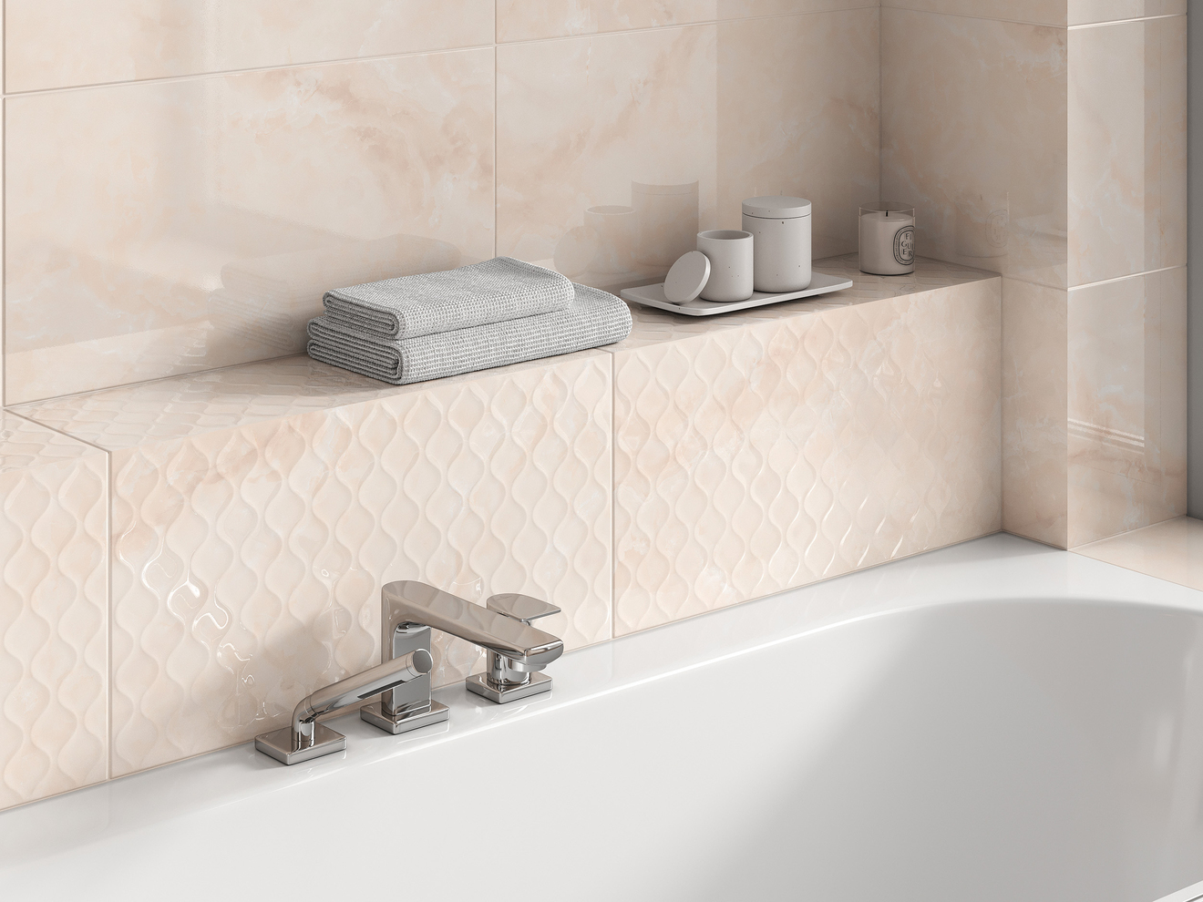 Многогранную красоту натурального камня раскрывает коллекция настенной плитки Gentle. Деликатные прожилки добавляют пространству динамики и делают камень более пикантным. Универсальный бежевый цвет отделочного материала идеально походит для создания интерьеров в современных стилях. Универсальную коллекцию под бежевый камень делает эффектной глянцевая поверхность — она привносит объём и делает узор глубоким.