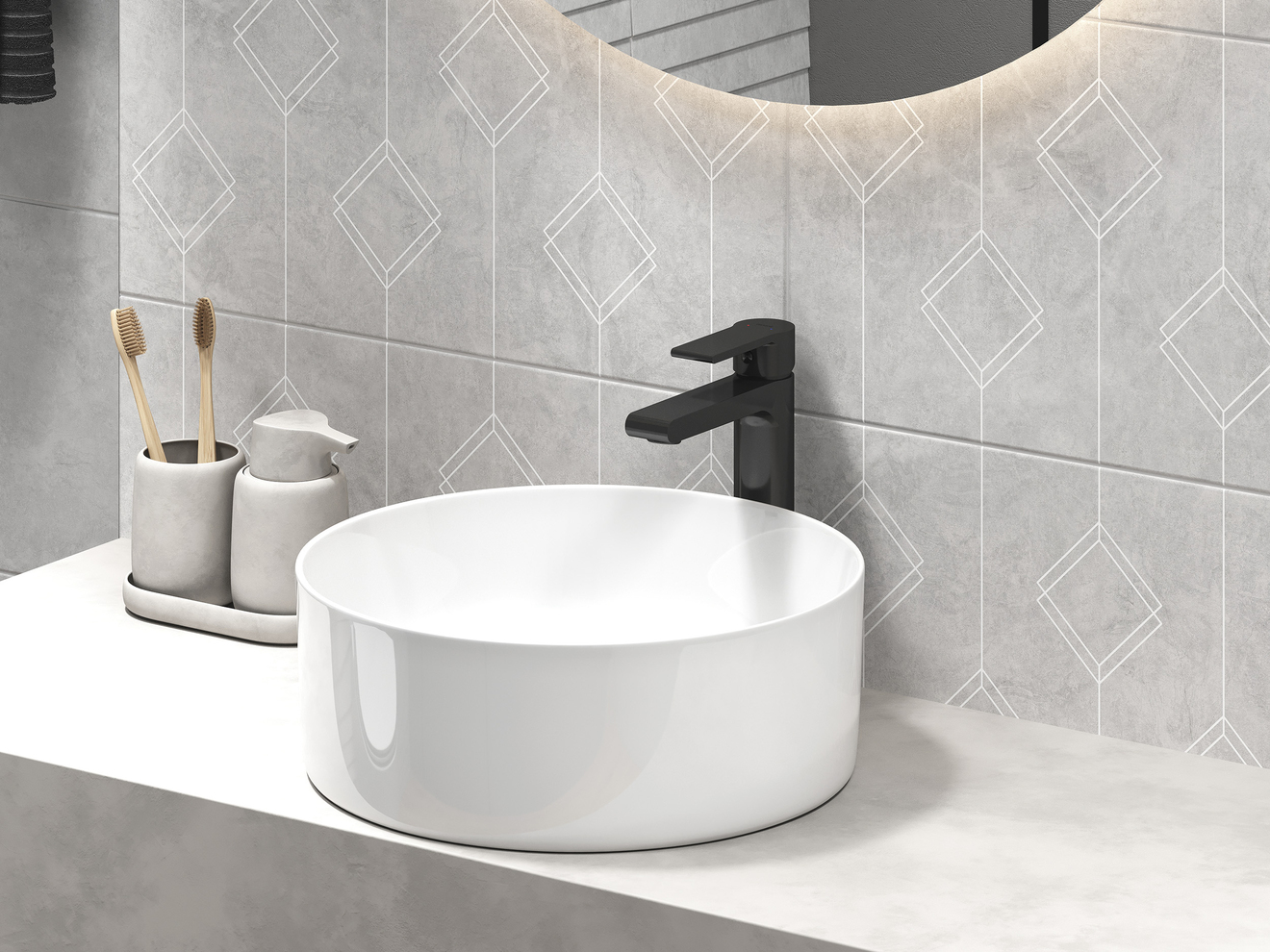 Настенная плитка Vetro со стильным геометрическим узором украсит любой минималистичный интерьер. Благодаря высокоточной печати её узор под камень выглядит объёмным. Матовый материал приятен на ощупь и позволяет эффектно выделить функциональные зоны. Настенную плитку Vetro рекомендуется использовать с керамогранитом тёплых оттенков под дерево.