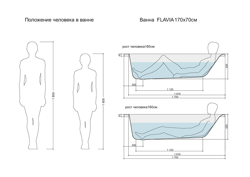 Прямоугольная ванна FLAVIA 170 (чертеж)
