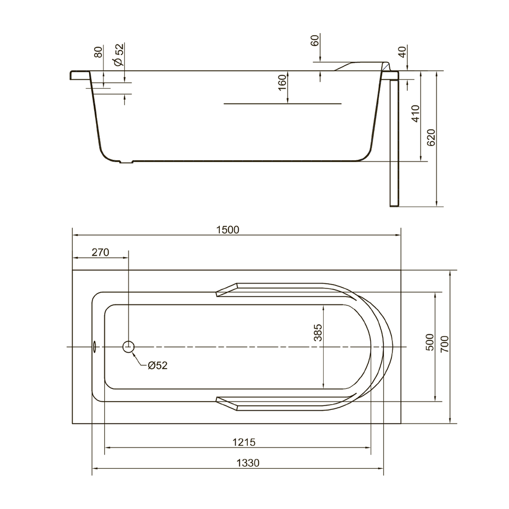 Прямоугольная ванна SANTANA 150 (чертеж)