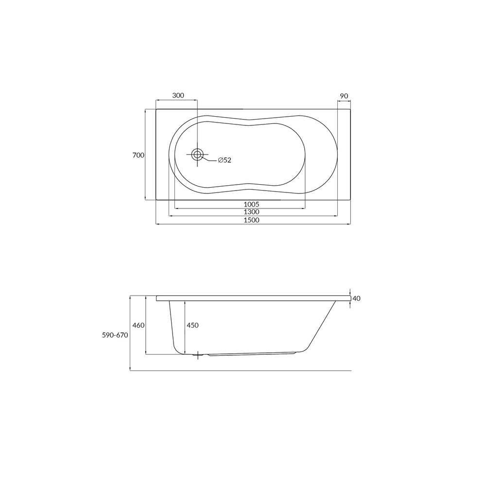 Ванна прямоугольная MIKA 150x70 (чертеж)