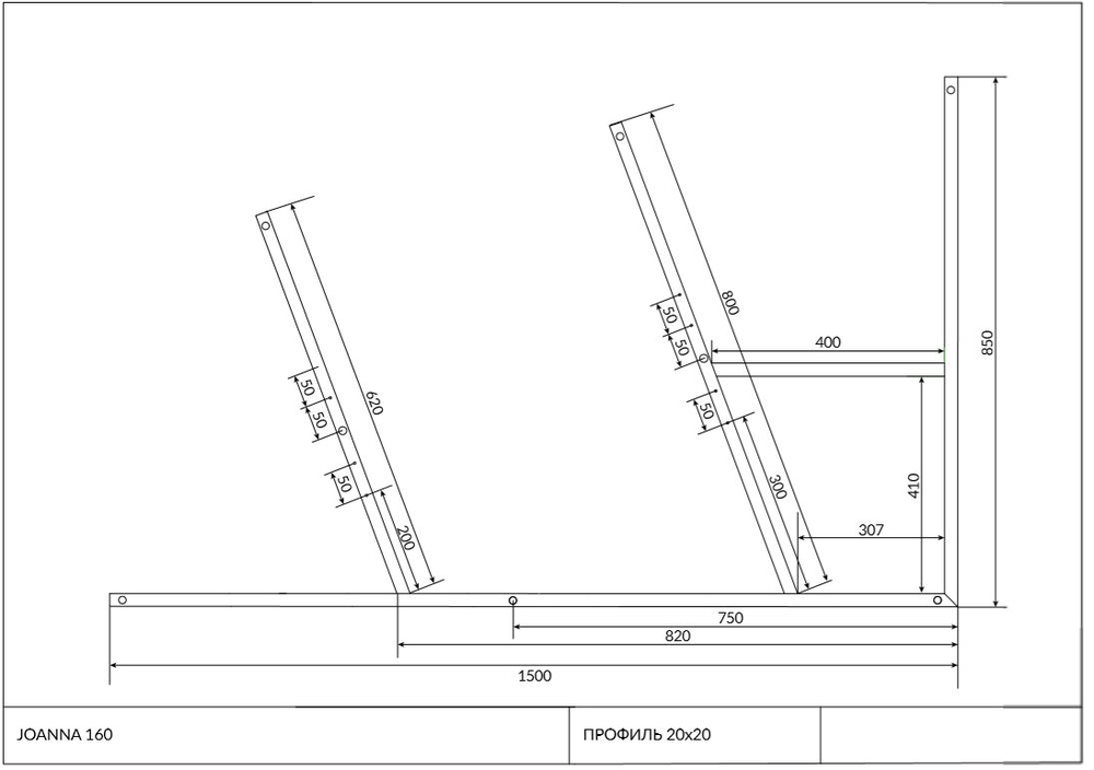 Усиленный каркас JOANNA выполнен из стали, в комплект входит: рама, 3 стойки, шпильки, инструкция по сборке.