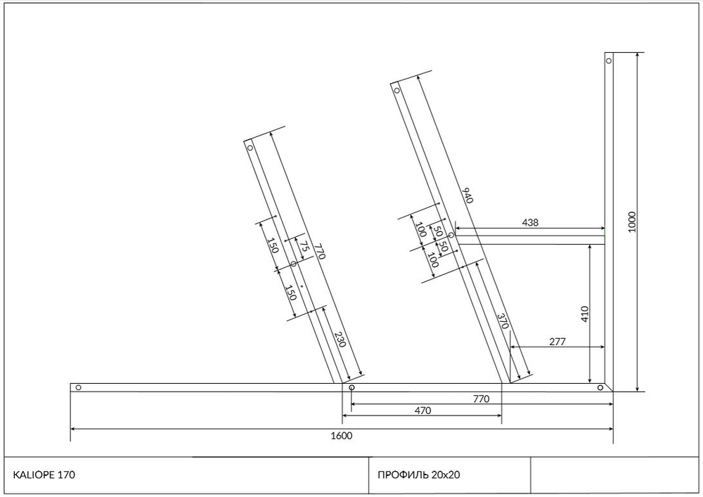 Усиленный каркас KALIOPE выполнен из стали, в комплект входит: рама, 3 стойки, шпильки, инструкция по сборке.