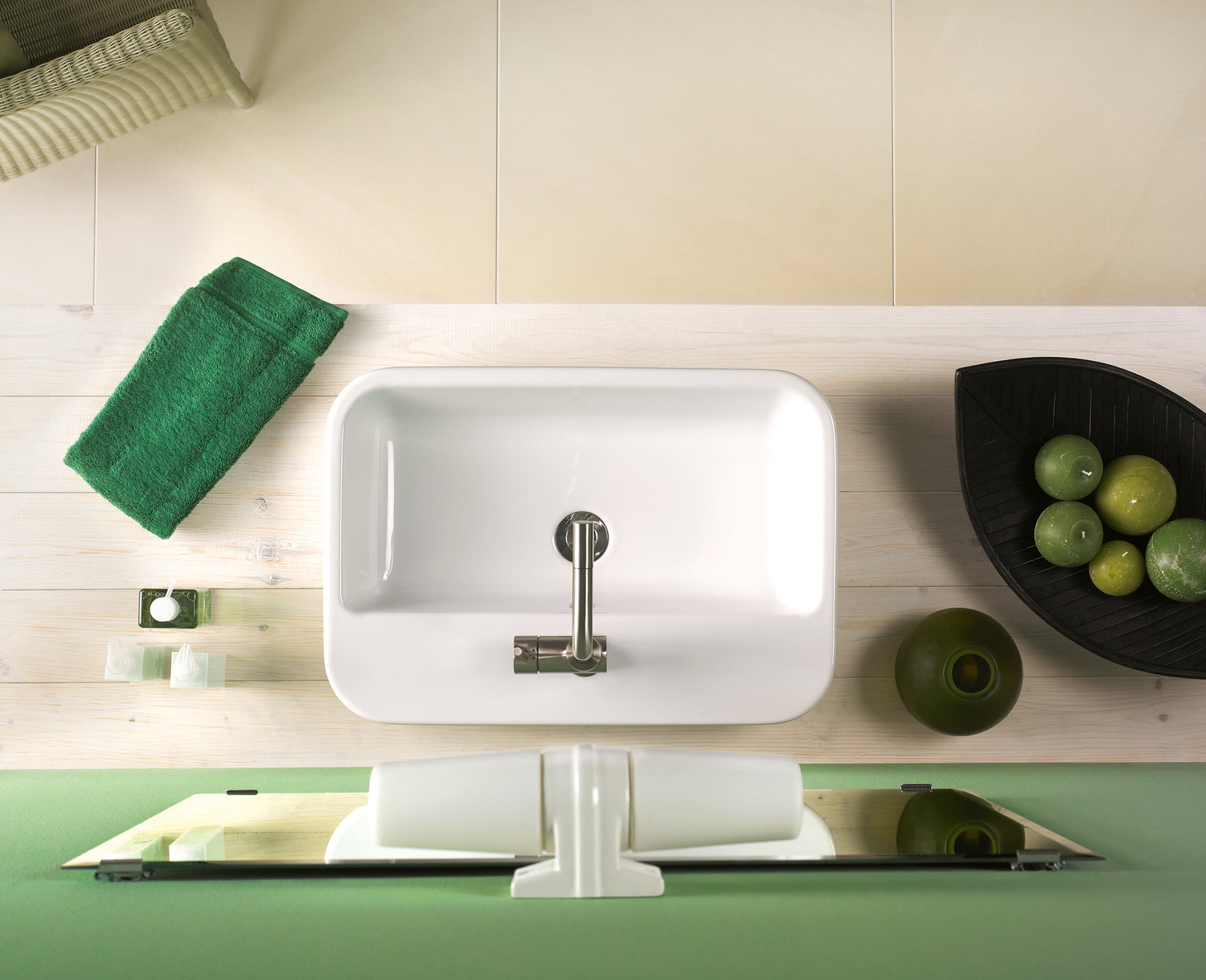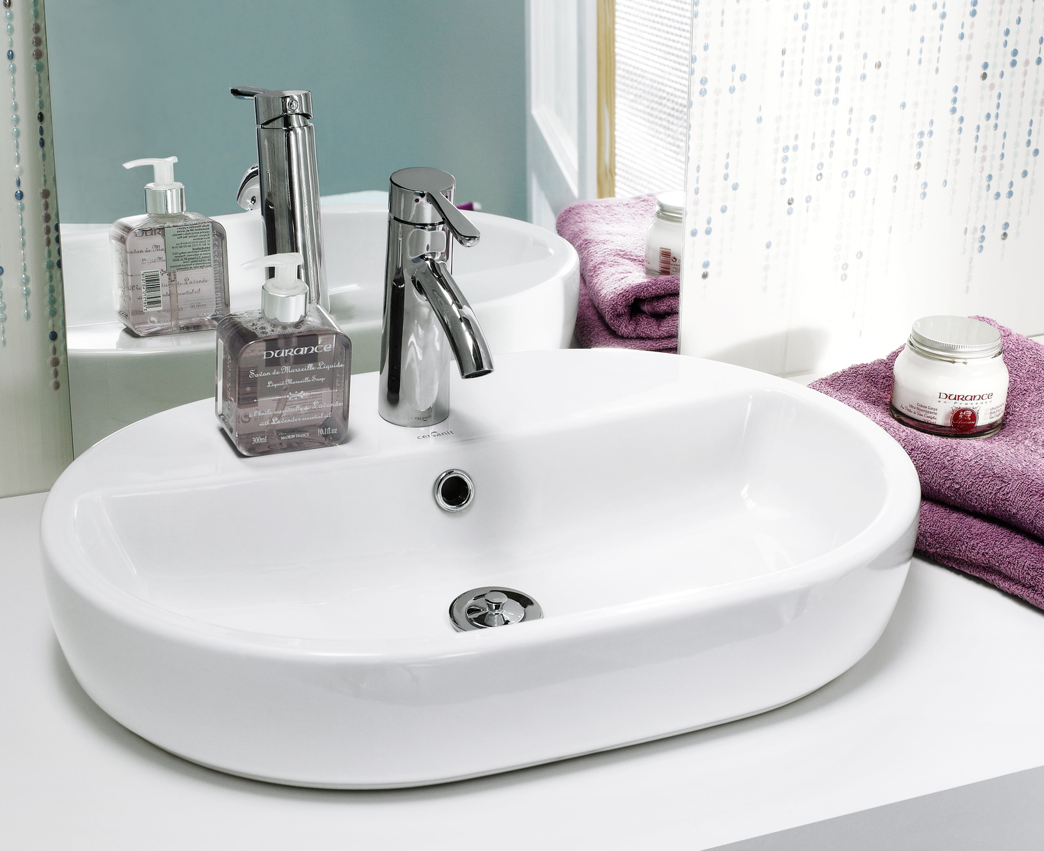 Раковины из коллекции CASPIA представлены в трех формах: круглые, овальные и квадратные. Вы можете подобрать нужный размер для ванной комнаты. Раковины с установкой на столешницу выглядят элегантно и современно.