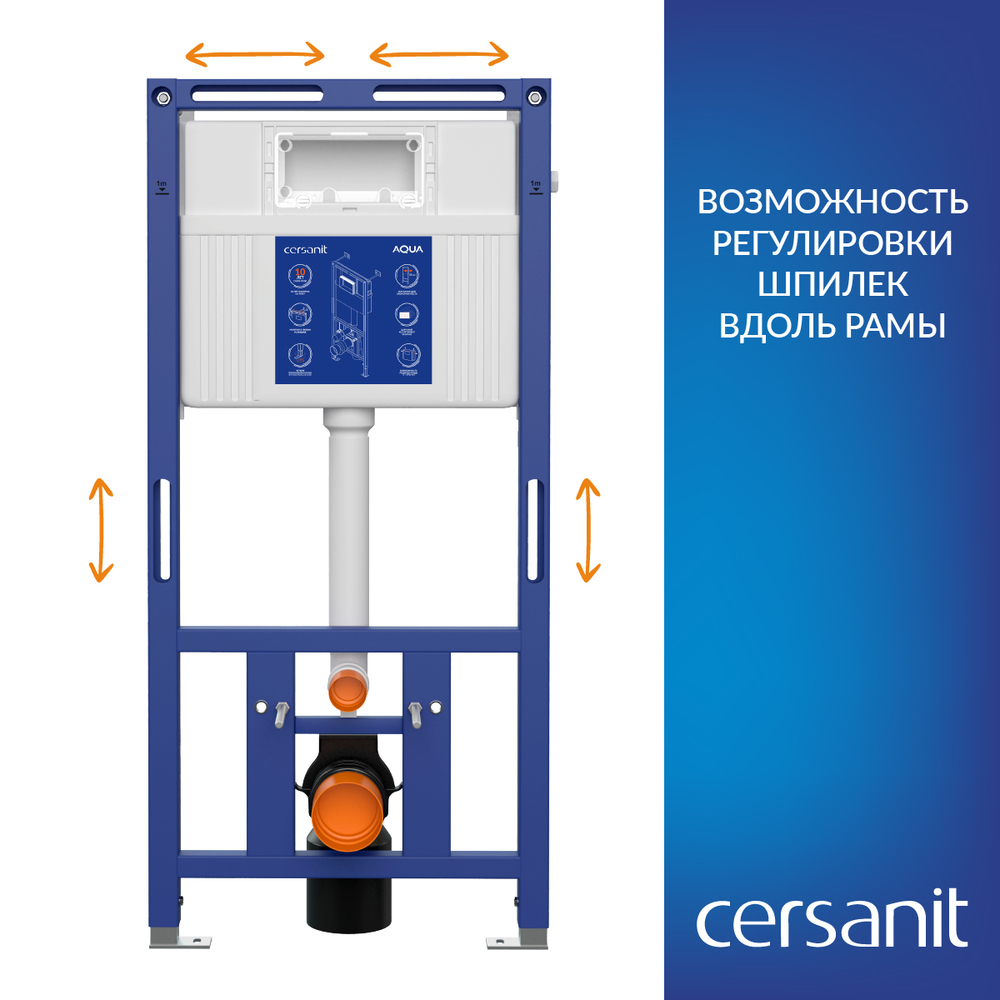 Конструкция рамы инсталляции Aqua позволяет крепить ее в разные проемы. Шпильки можно установить сверху и посредине рамы — их положение в горизонтальной и в вертикальной плоскостях регулируется благодаря специальным отверстиям. Все рекомендованные комбинации и сочетания креплений указаны в инструкции. Каждый вариант проверен под нагрузкой 400 кг.