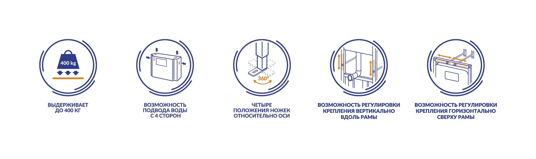Выдвижные ножки инсталляций поворачиваются на 360°. Всё необходимое для монтажа, в том числе и шпильки для крепления к стене, поставляется в комплекте. Продуманная до мелочей конструкция делает установку гибкой и максимально комфортной, что позволяет добиться идеального результата.