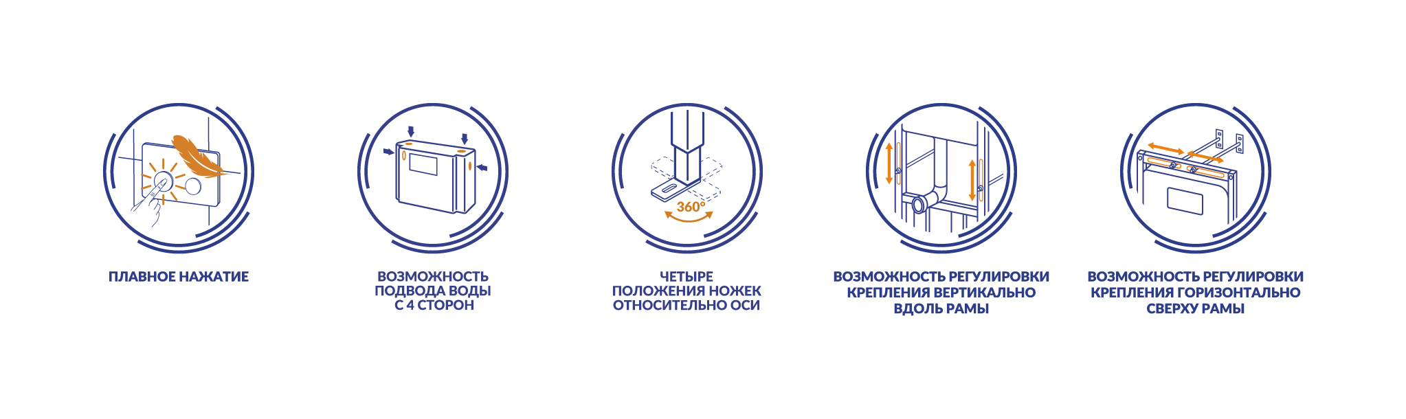 Выдвижные ножки инсталляций поворачиваются на 360°. Всё необходимое для монтажа, в том числе и шпильки для крепления к стене, поставляется в комплекте. Продуманная до мелочей конструкция делает установку гибкой и максимально комфортной, что позволяет добиться идеального результата.