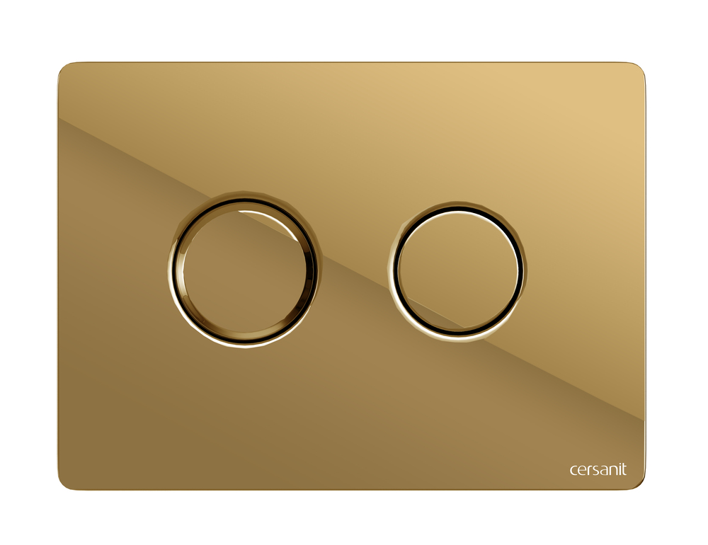 Кнопка изготовлена из пластика с глянцевым золотым покрытием для двухуровневого механизма смыва