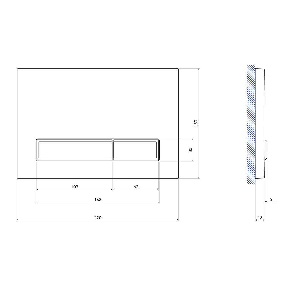 Эффектная матовая кнопка Blick с прямоугольными клавишами — стильное оборудование для современного санузла. Элементы удобно расположены по нижнему краю кнопки, а на тактильно приятном матовом покрытии не остается отпечатков пальцев. Модель подходит для воплощения смелых идей и украшения ванных комнат в прогрессивных стилях, таких как лофт и хайтек.