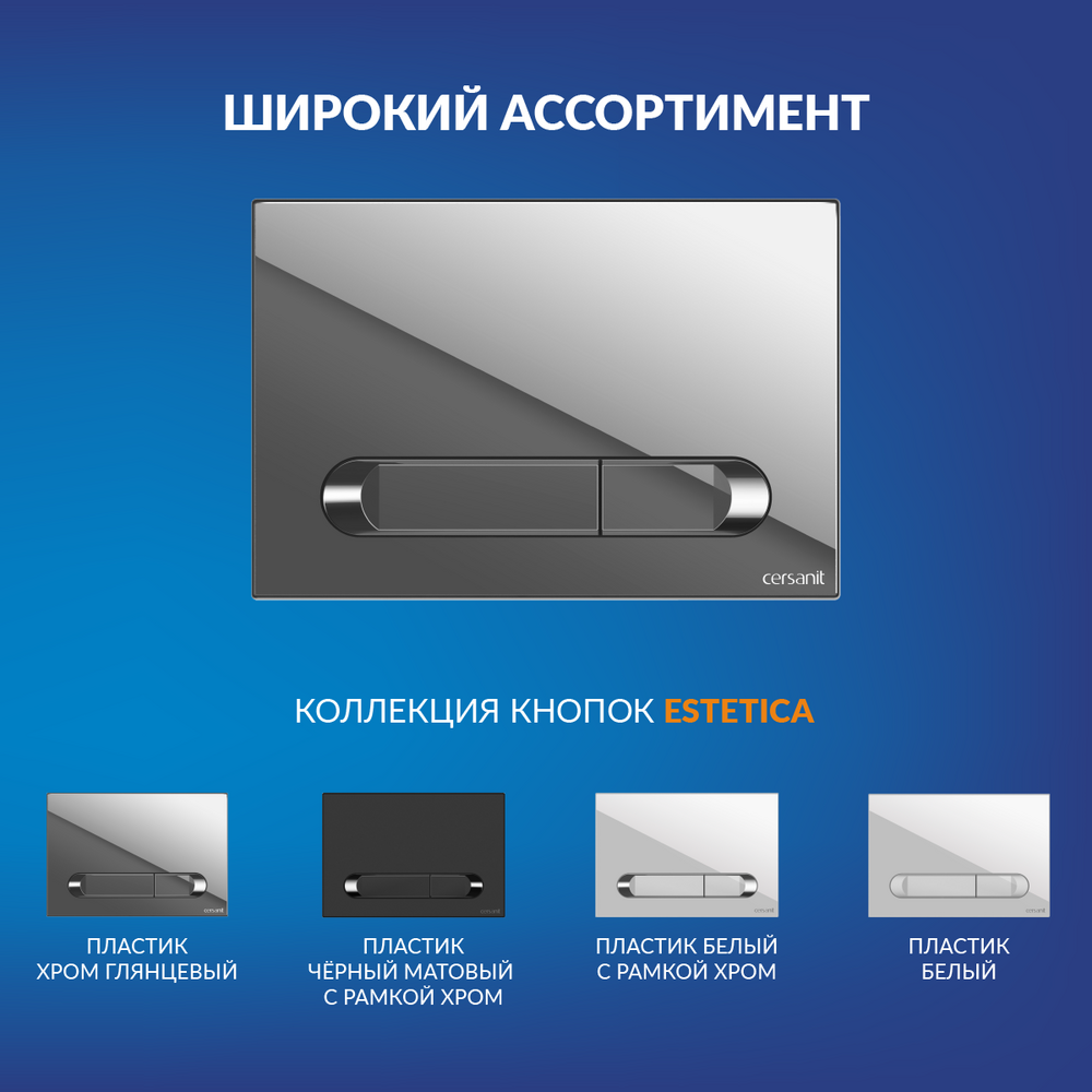 Оборудование изготовлено из высококачественного пластика, стойкого к износу и загрязнениям. А пройденные испытания доказали бесперебойную работу в течение 200 тыс. циклов. Производитель уверен в качестве товара, поэтому дает на кнопки 3 года гарантии. Весь этот срок, и даже дольше наслаждайтесь эстетикой технологичных решений от Cersanit!