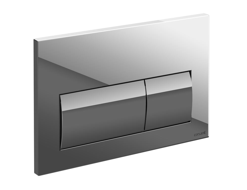 Кнопка изготовлена из пластика с глянцевым хромированным покрытием для двухуровневого механизма смыва
