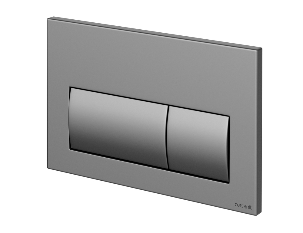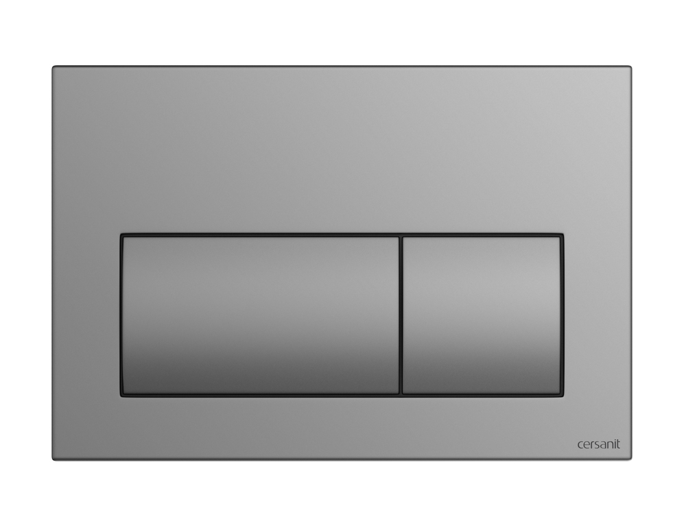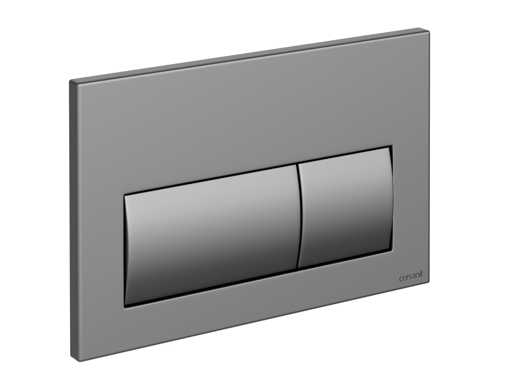 Кнопка изготовлена из пластика с матовым хромированным покрытием для двухуровневого механизма смыва