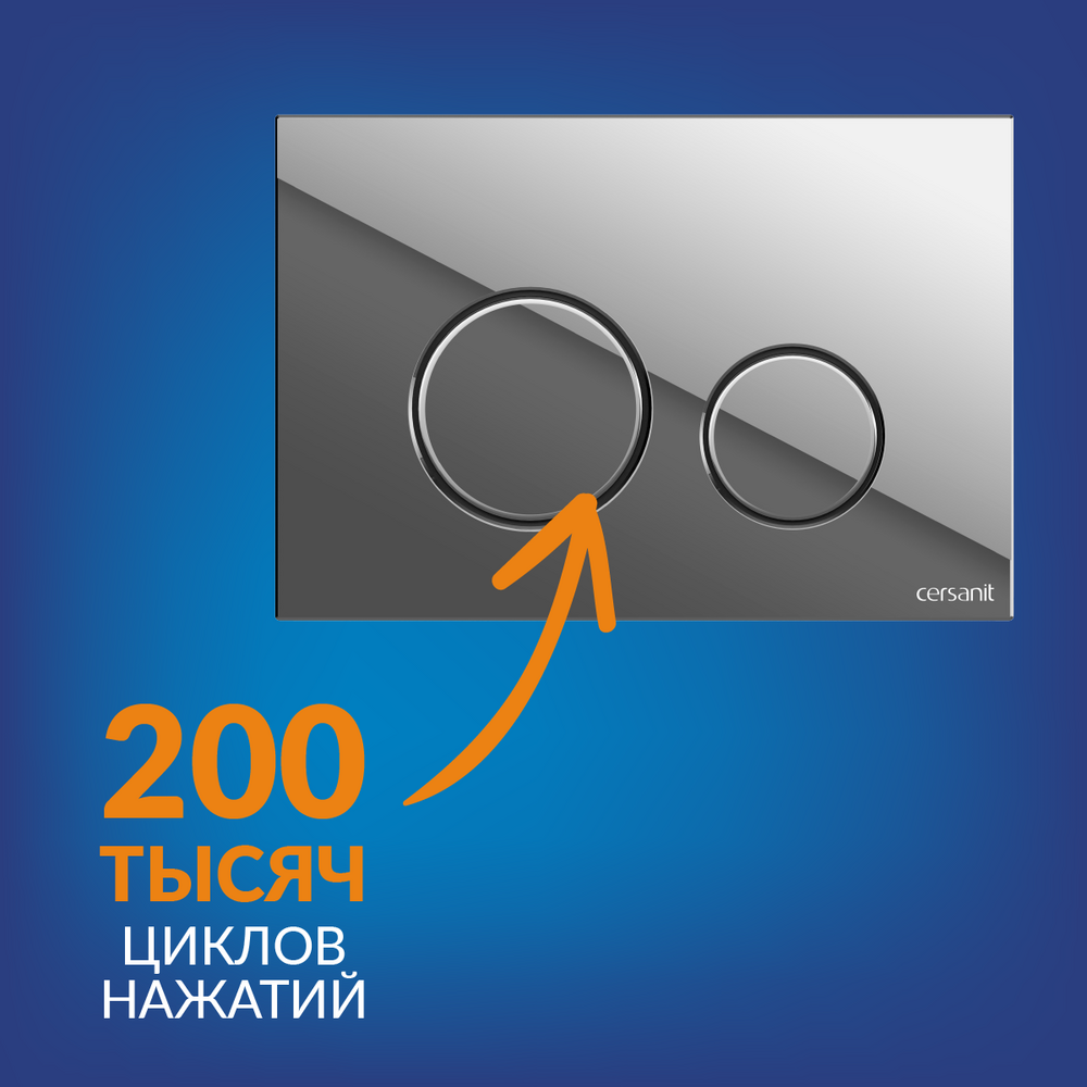 Оборудование изготовлено из высококлассного пластика, а пройденные испытания доказали бесперебойную работу в течение 200 тыс. циклов. Производитель уверен в качестве товара, поэтому дает на кнопки 3 года гарантии. Весь этот срок, и даже дольше наслаждайтесь эстетикой технологичных решений от Cersanit!
