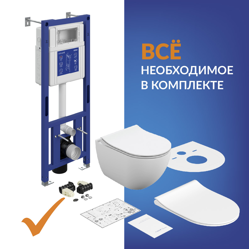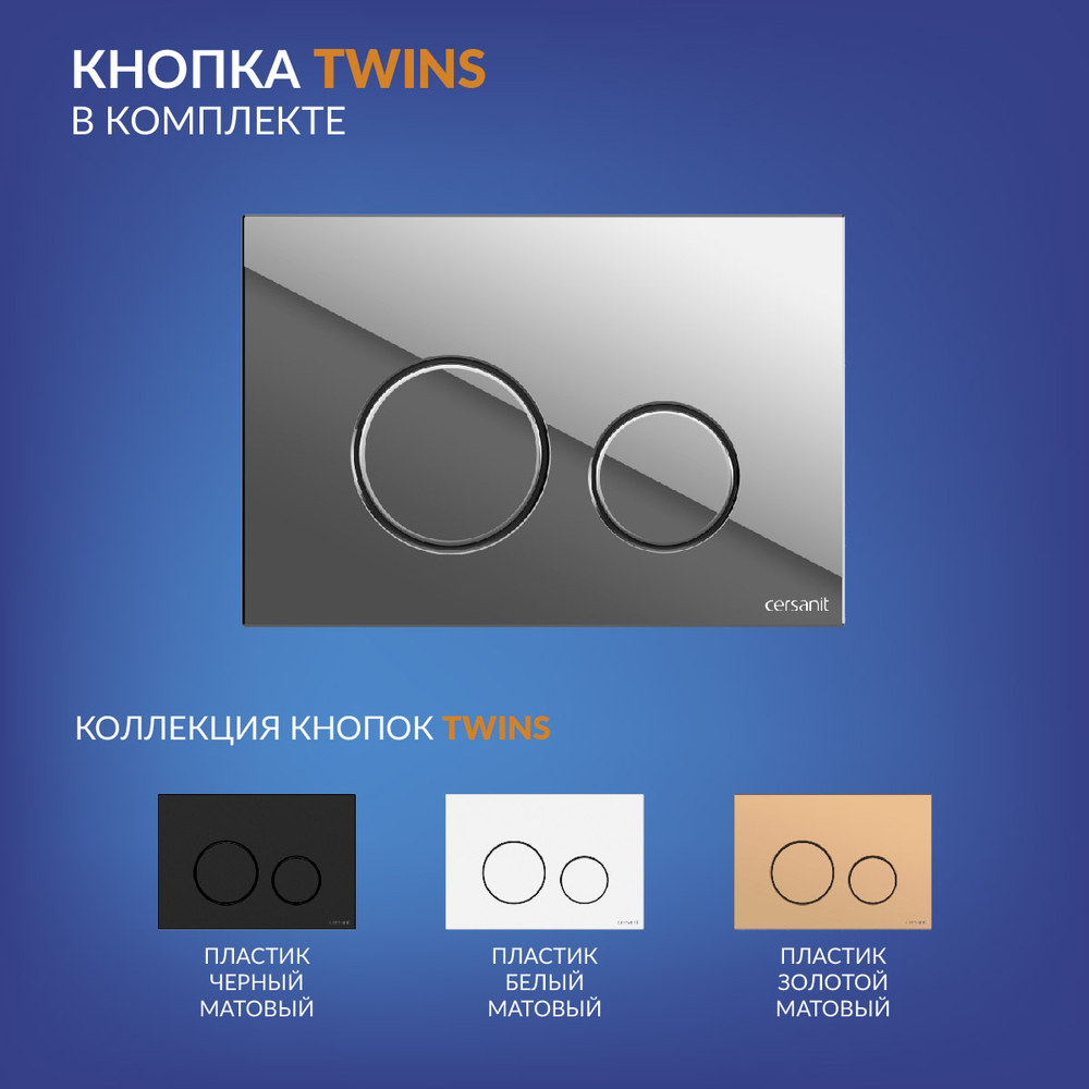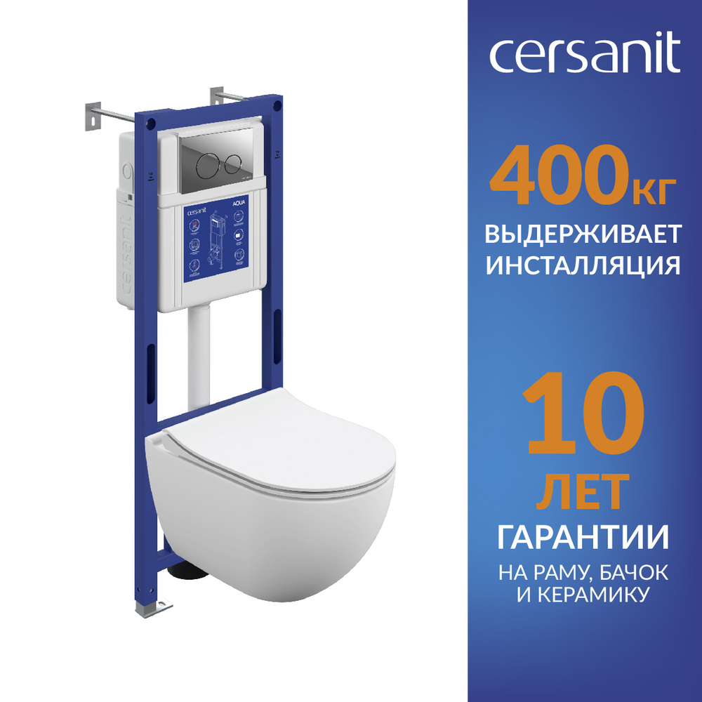 Комплект инсталляция с унитазом — это готовое решение для санузла. В сет входит инсталляция AQUA 40 SMART M шириной 40 см с двухуровневым смывом на 3 и 6 литров. А также безободковый подвесной унитаз BRASKO SMART с современным монолитным дизайном с ультратонким антибактериальным сиденьем из дюропласта с функцией плавного закрывания и легкосъемом. Дополняет комплект хромированная глянцевая пластиковая кнопка Twins. Cersanit дает длительные гарантии на оборудование: 10 лет на санитарную керамику, раму и бачок смыва. Продукция, созданная из высококачественных материалов, практична, красива и комфортна.