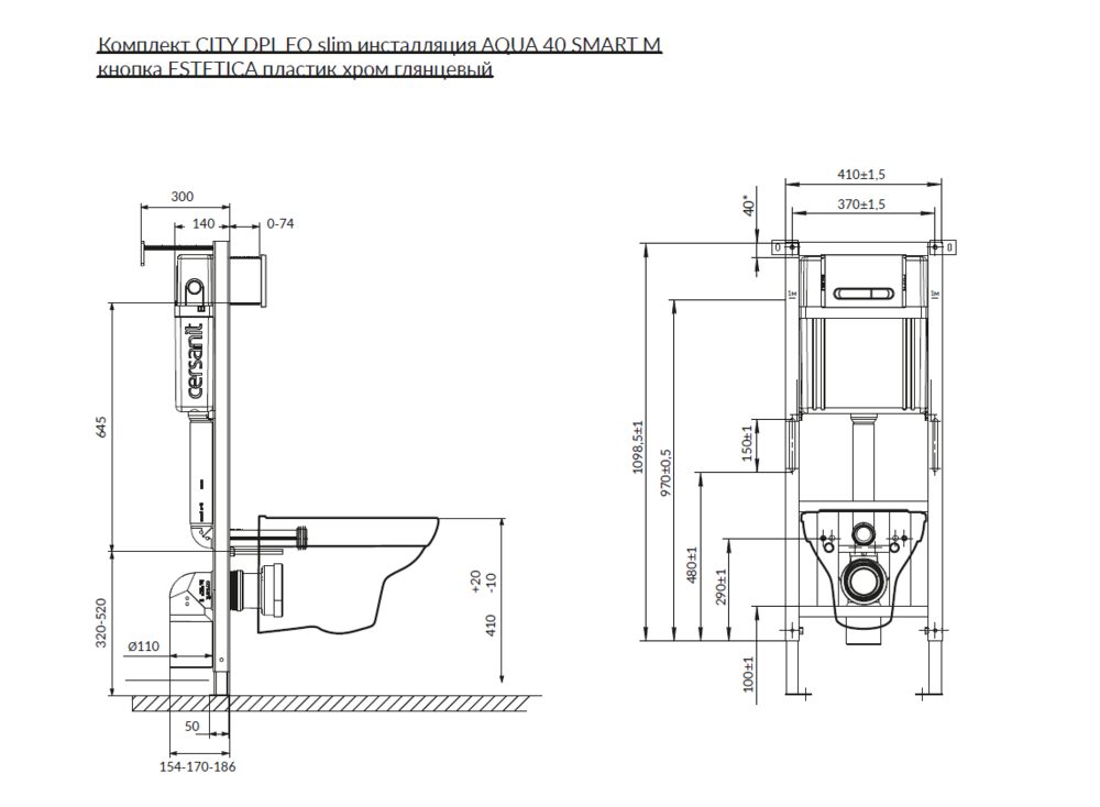 Комплект CITY CO DPL EO slim инсталляция AQUA 40 SMART M кнопка ESTETICA пластик белый с рамкой хром