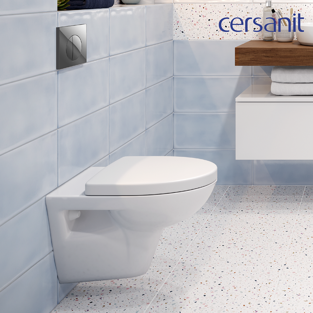 Комплект PARVA Clean On с ультратонким антибактериальным сиденьем из дюропласта с функцией плавного закрывания и легкосъемом, с инсталяцией BLACK и пластиковой кнопкой смыва LEON пластик хром глянцевый