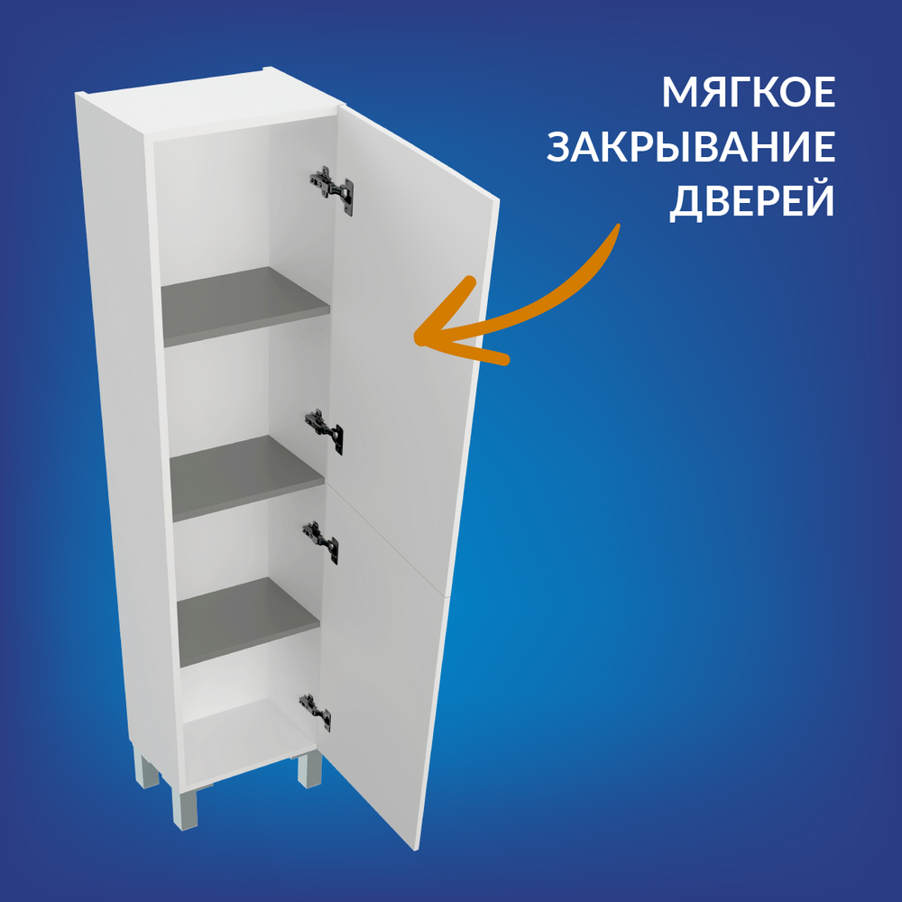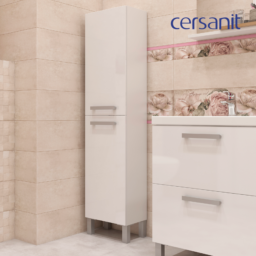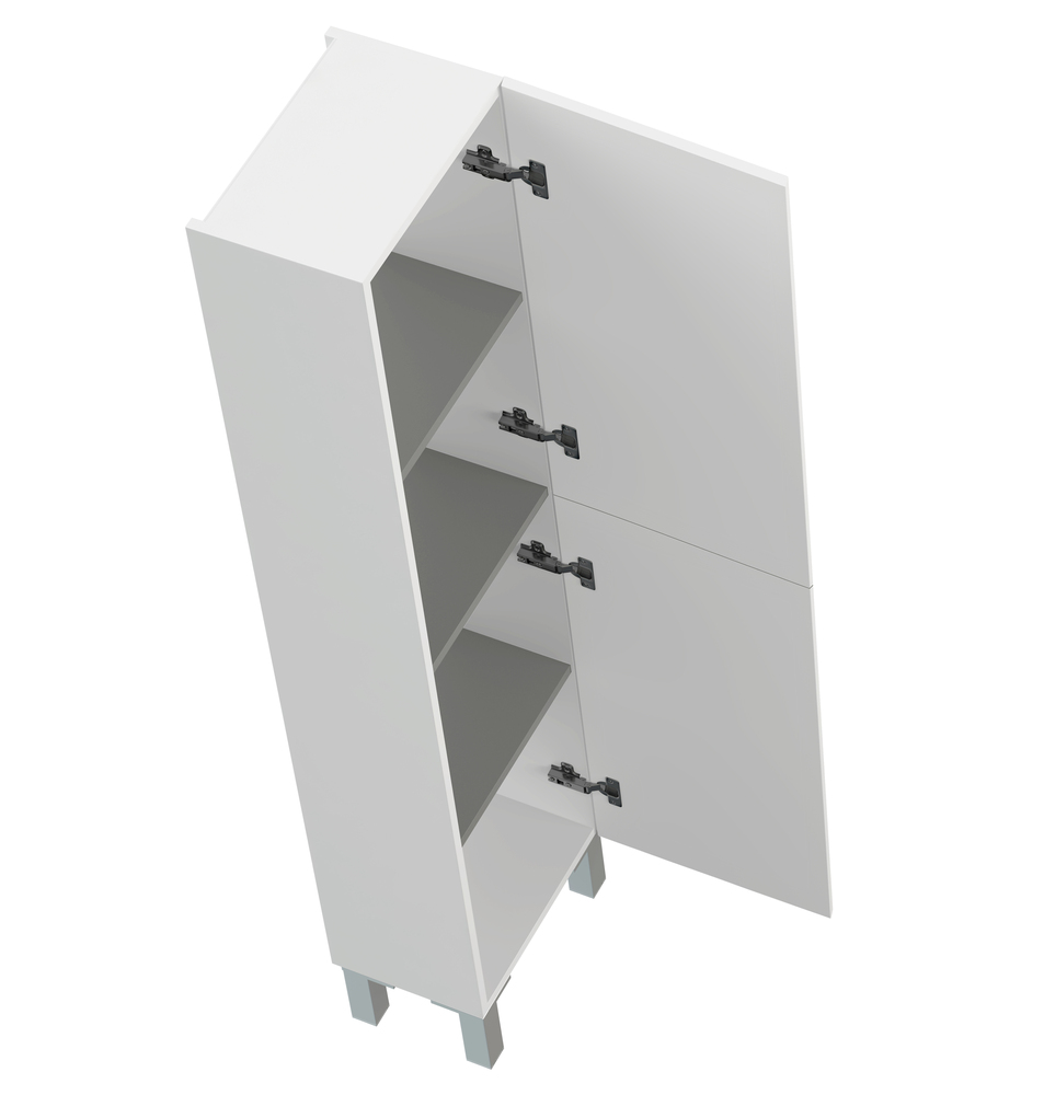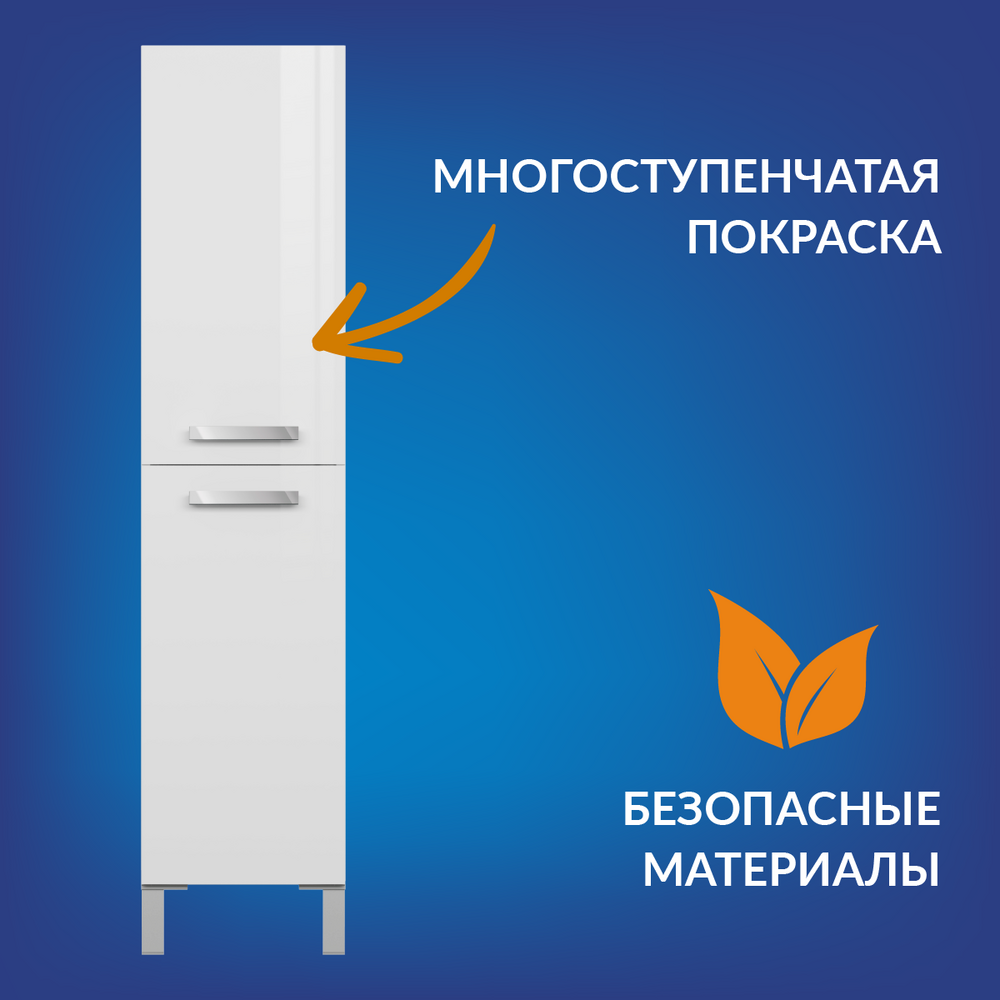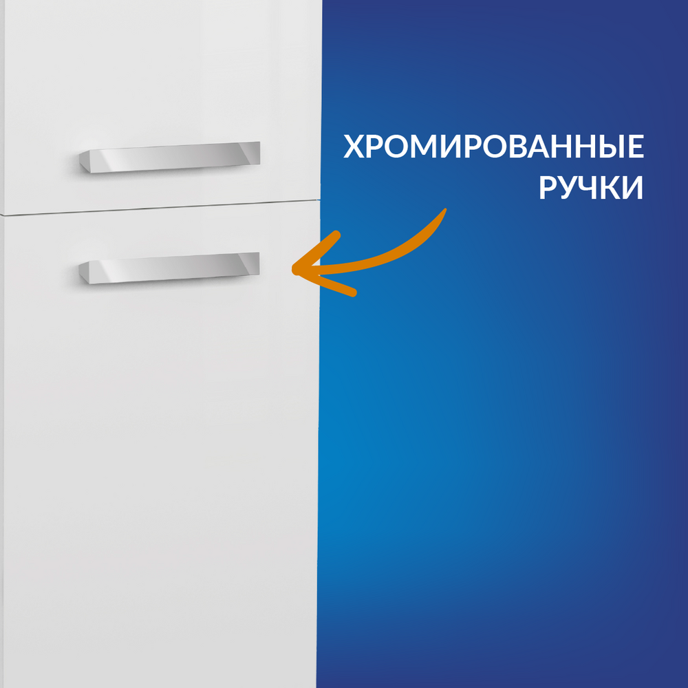 Пенал MELAR выполнен в нетеряющем актуальности белом цвете. Гладкие глянцевые фасады ящиков дополены хромированными ручками четкой геометричесокй формы. Петли дверец снабжены доводчиками, что позволяет закрывать дверцы мягко и бесшумно. Пенал можно как подвешивать на стенку, так и устанавливать на ножки, что делает его универсальным и функциональным решением для любой ванной комнаты.