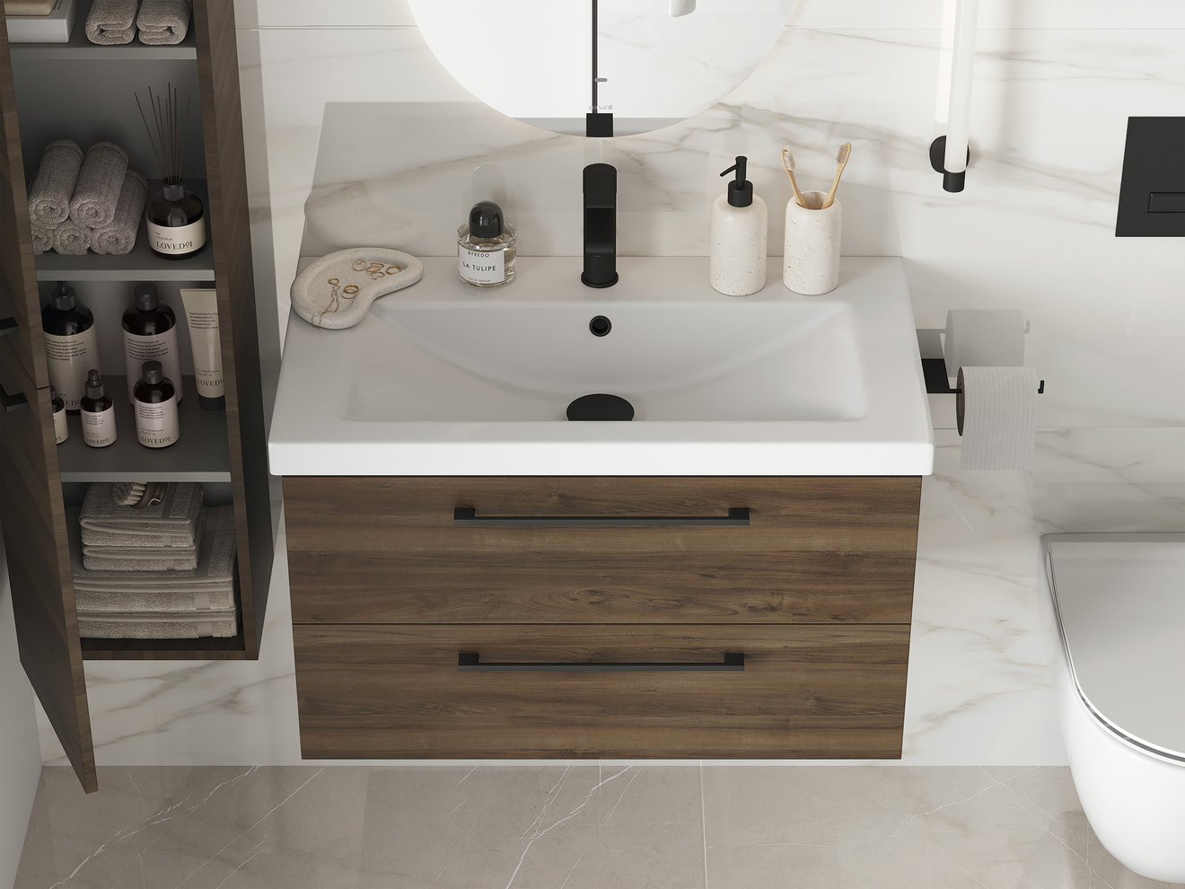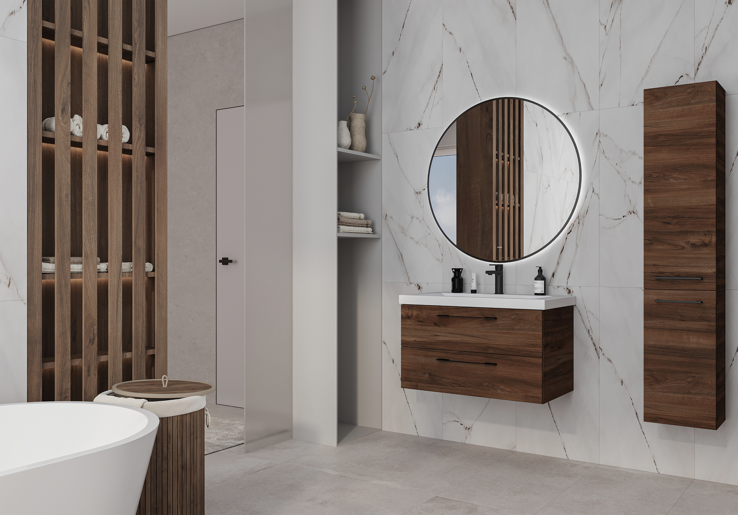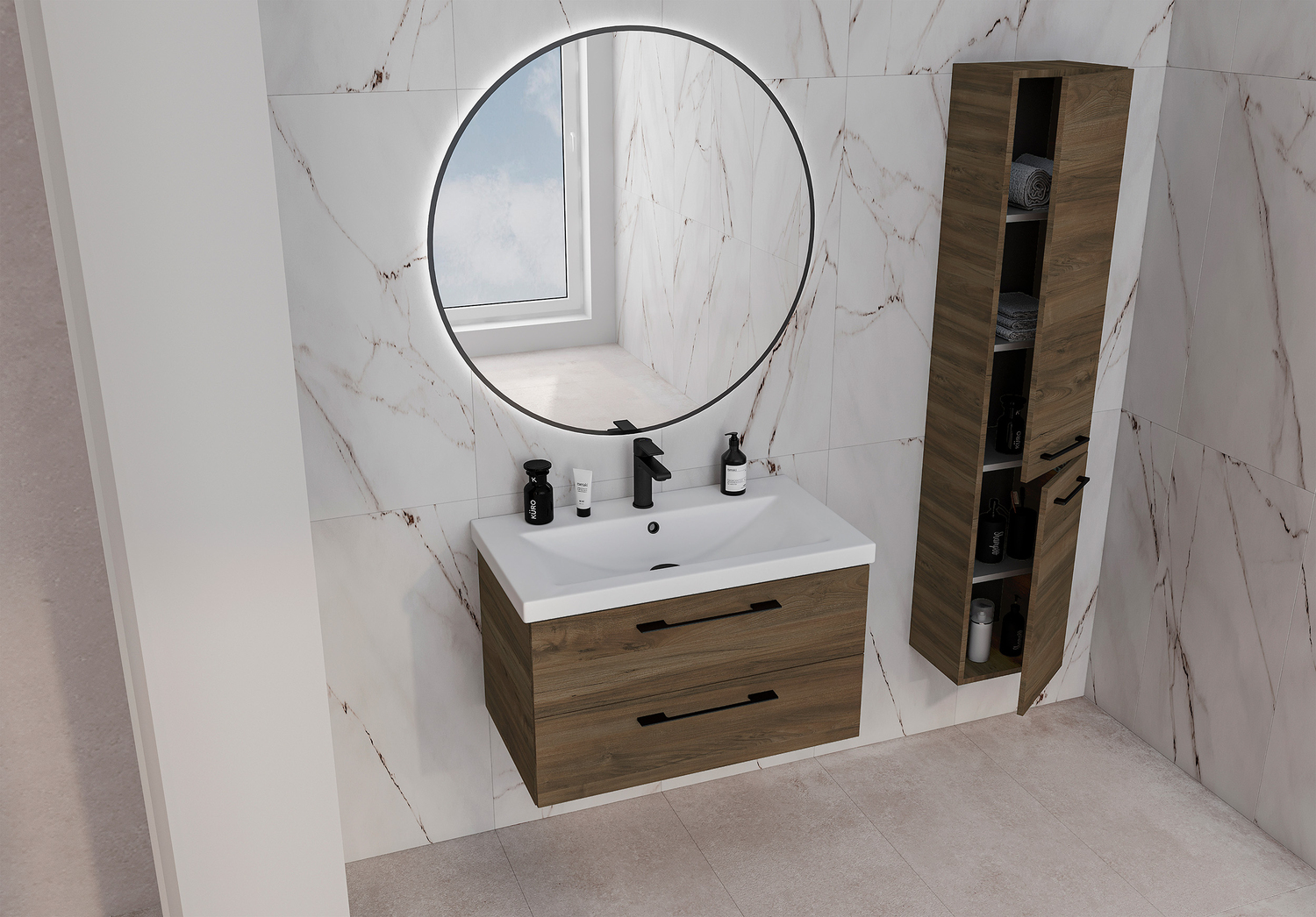 Пенал Lara Табак — это изысканное сочетание благородной красоты цвета тёмного дерева с функциональным конструктивом. Он поможет навести порядок в ванной комнате и сделает пространство упорядоченным. Мебель дополнена минималистичными тумбами и сочетается со всей продукцией бренда Cersanit.